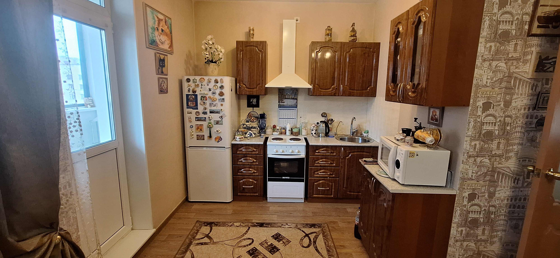 Новым владельцам остаётся кухонный гарнитур,плита,вытяжка.