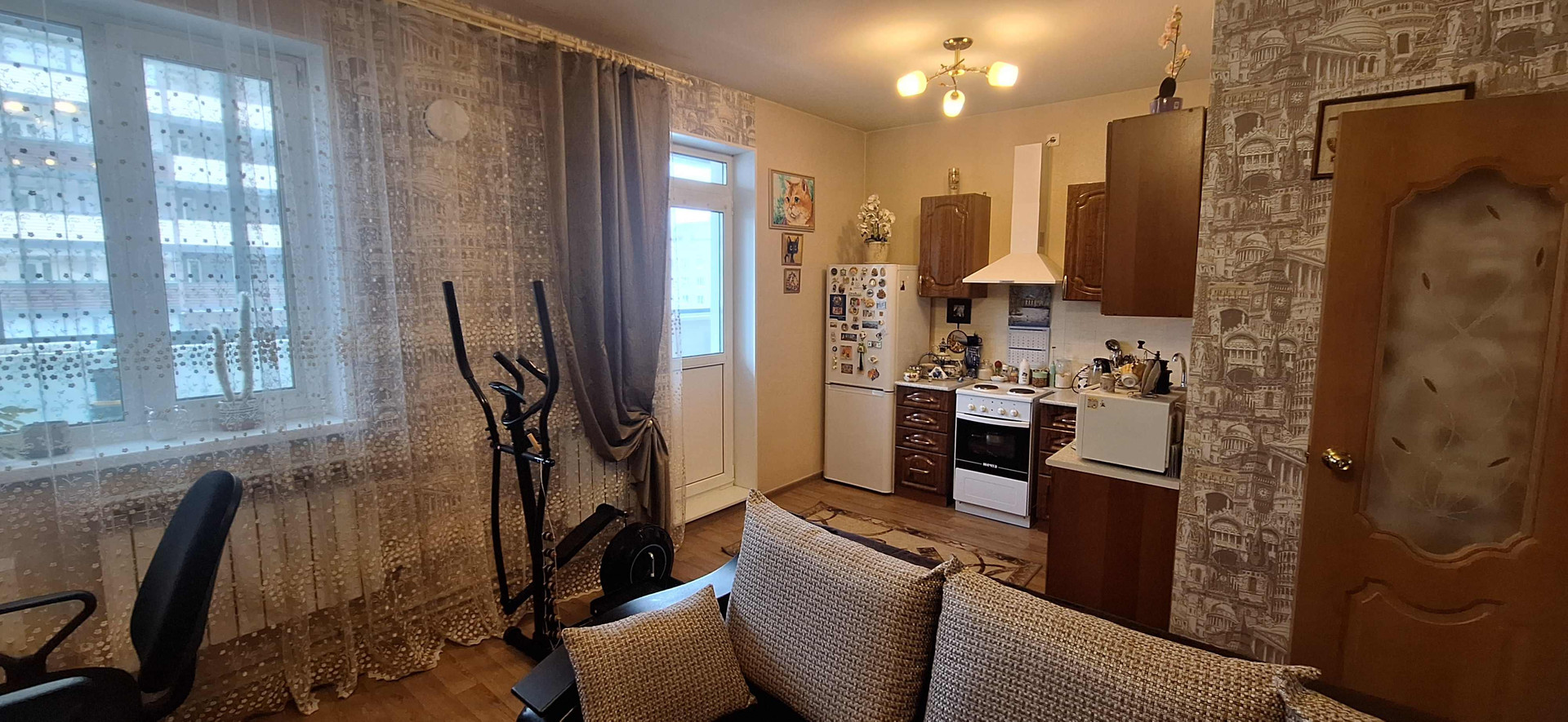 По всей квартире линолеум хорошего 32 класса качества.