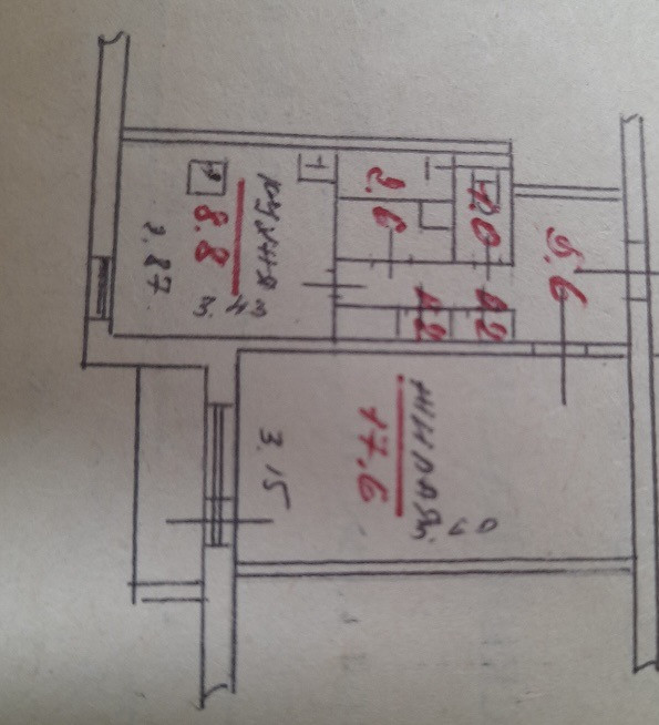 Жилая площадь 17.6 м2