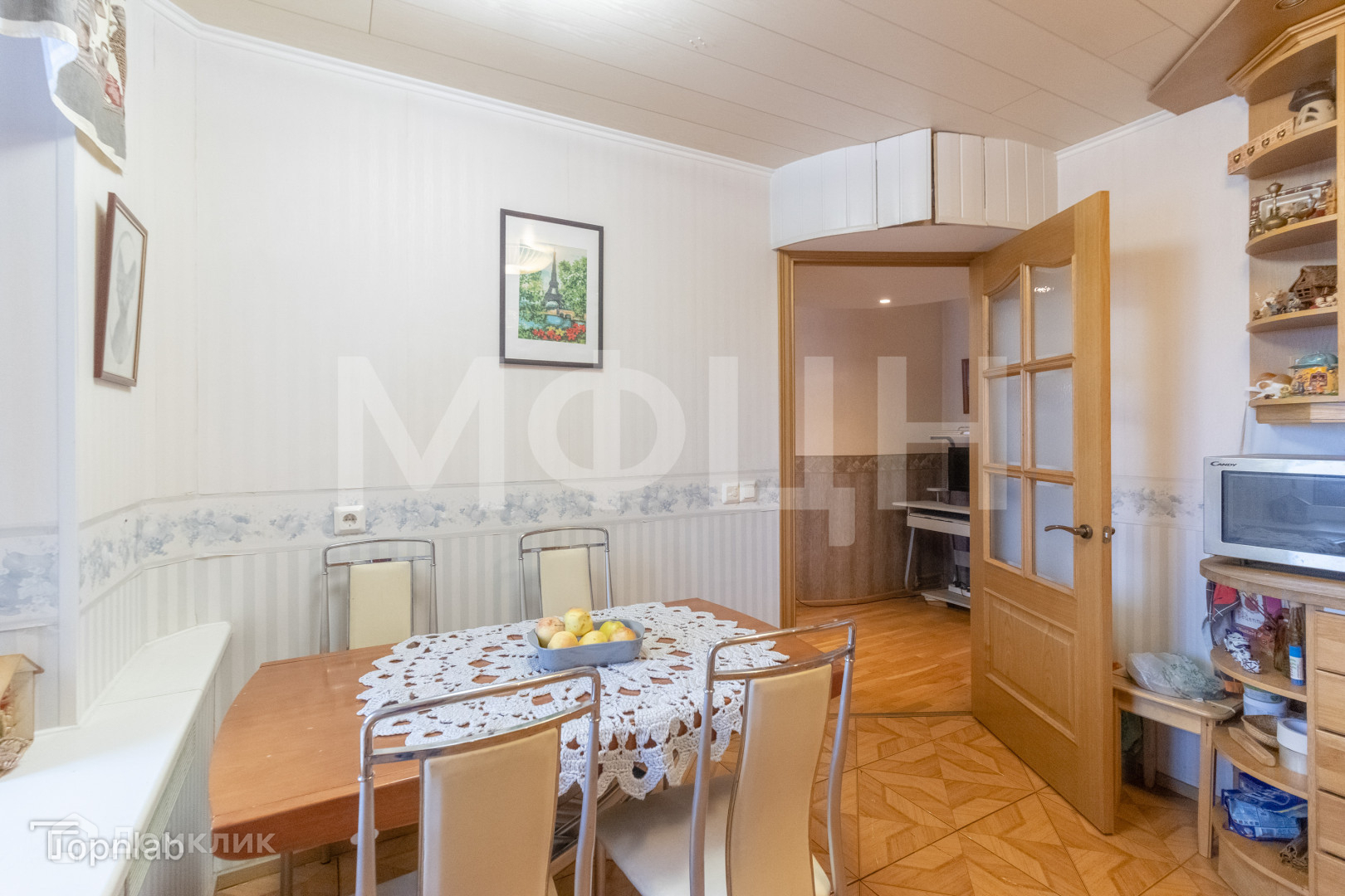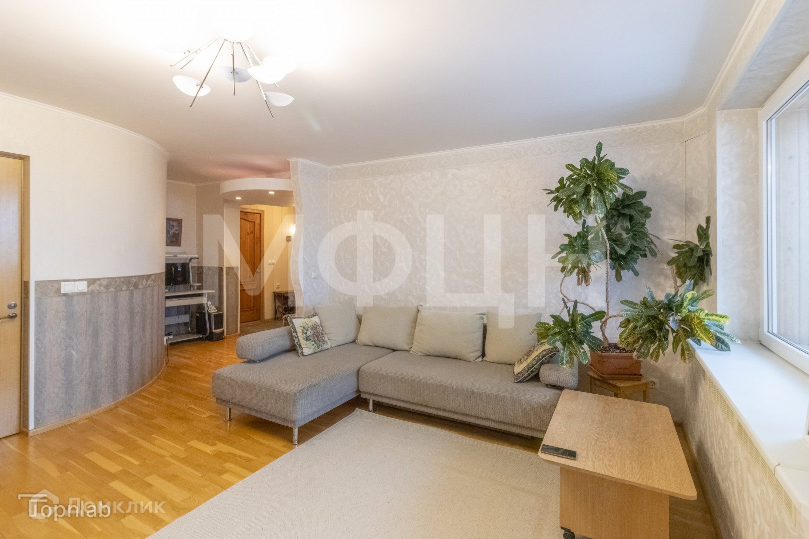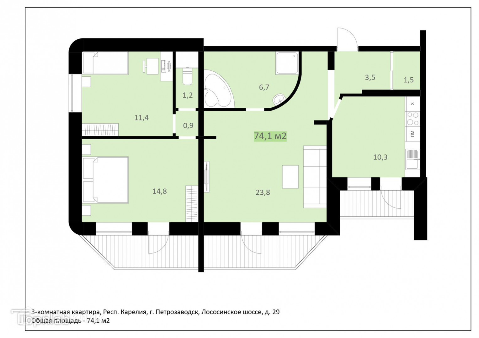 Площадь: Общая площадь квартиры составляет 74.1 кв. м. Здесь вы найдете просторную, функциональную кухню (с тёплым полом) площадью 10,3 кв. м, в которой для новых собственников остается вся мебель и техника!