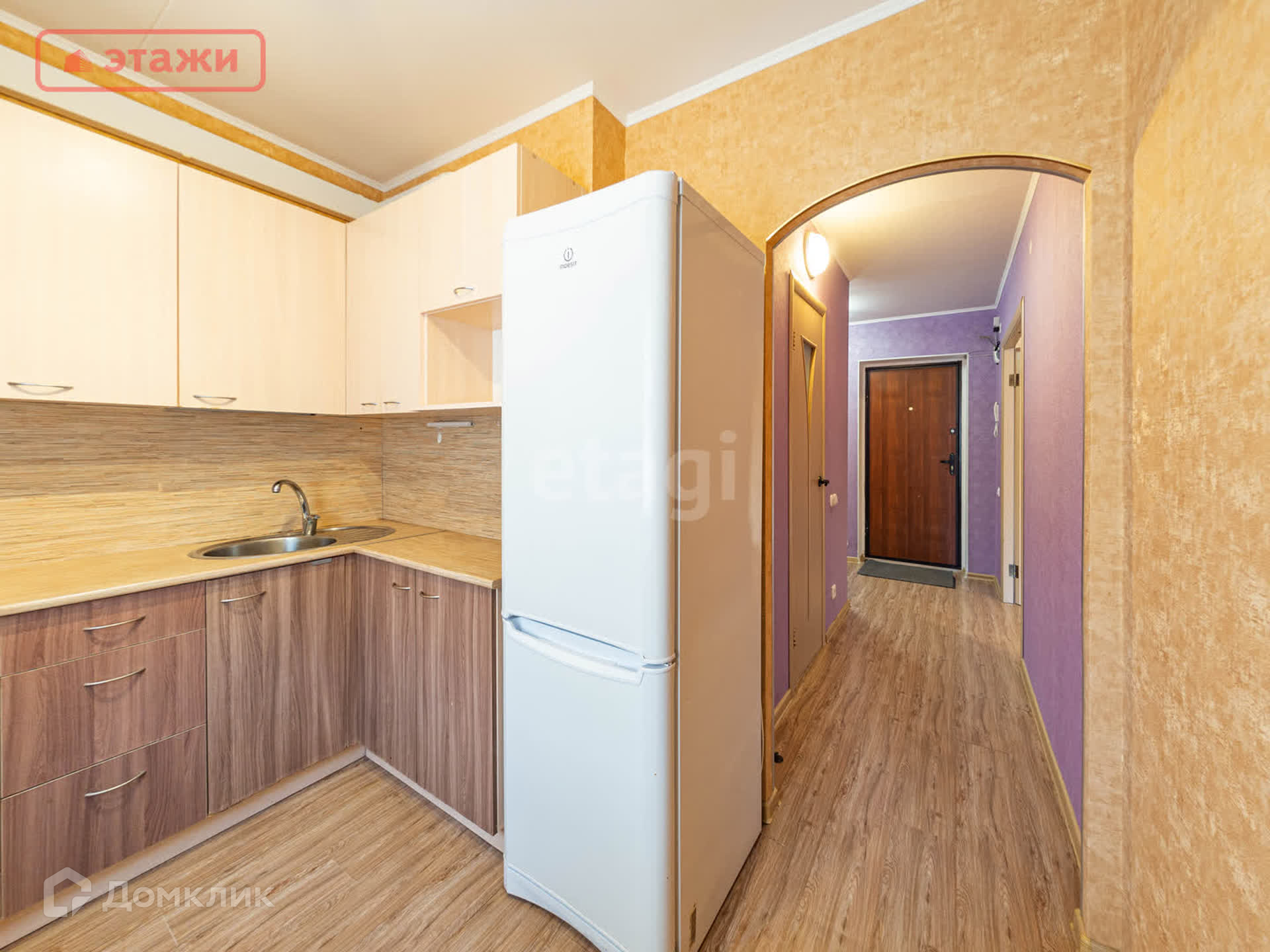 При продаже остается встроенная кухня с техникой (варочная панель, холодильник, вытяжка, стиральная машина), а также вся мебель, представленная на фото