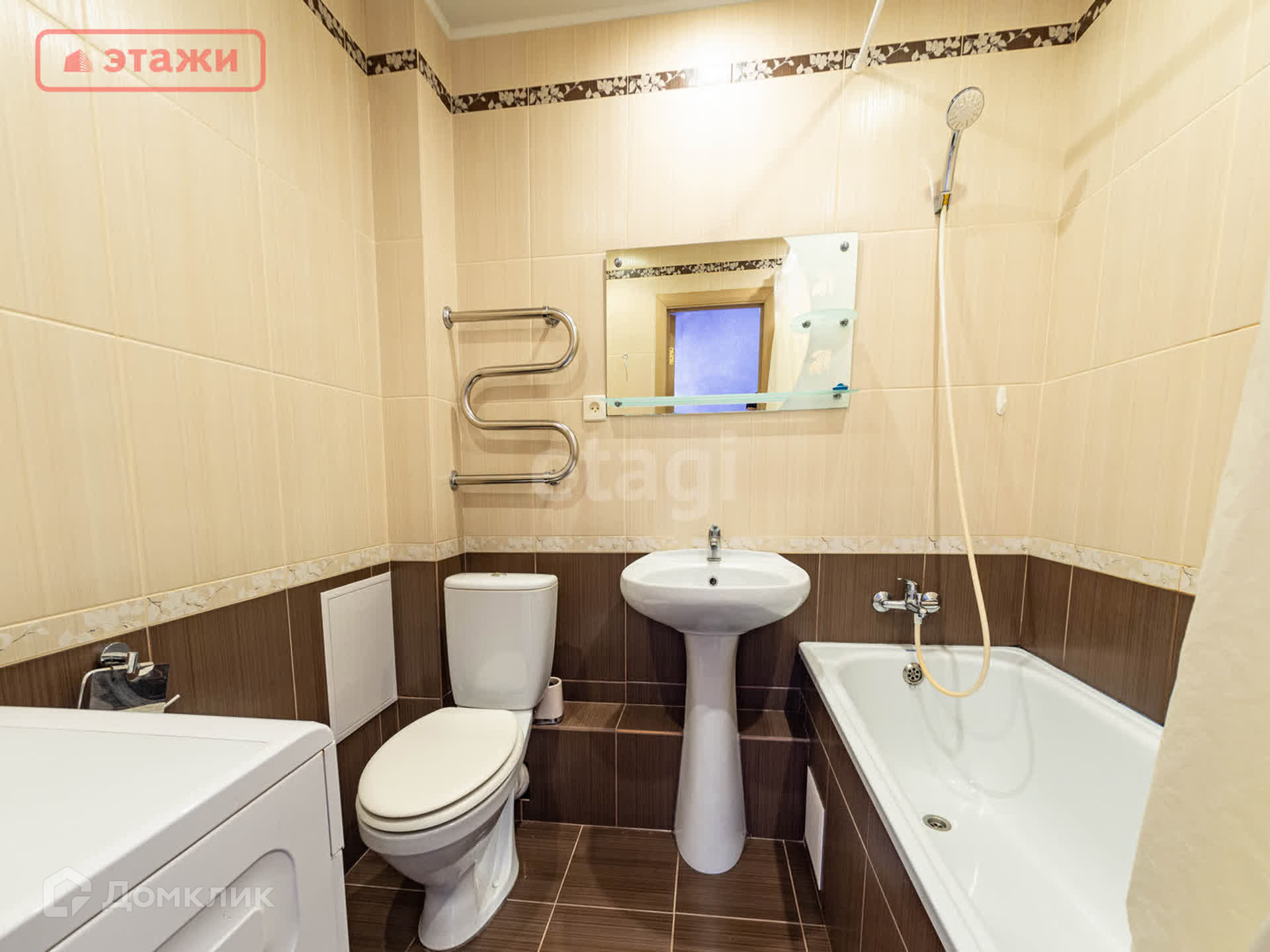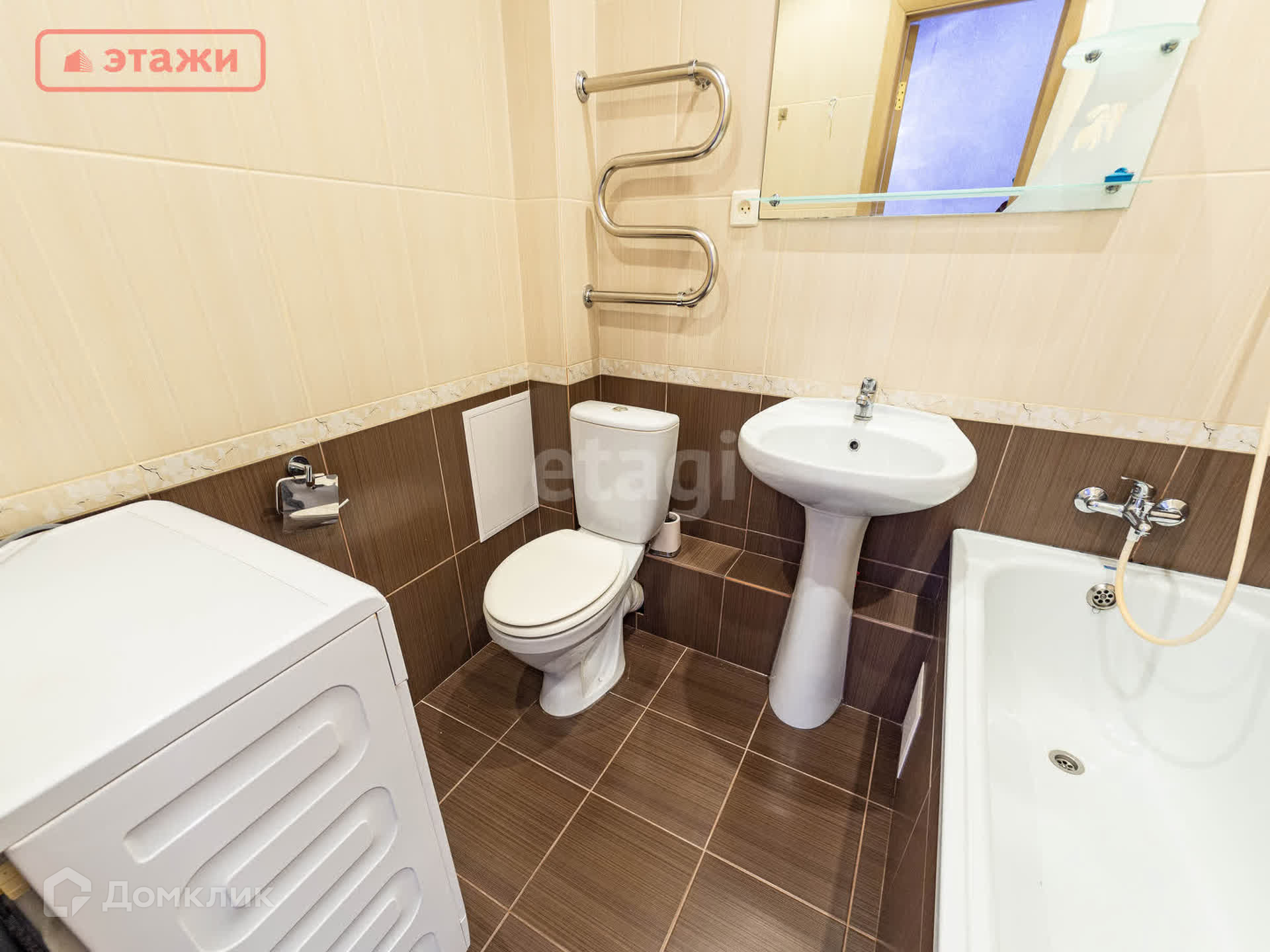 - Совмещенный санузел, облицован кафельной плиткой.