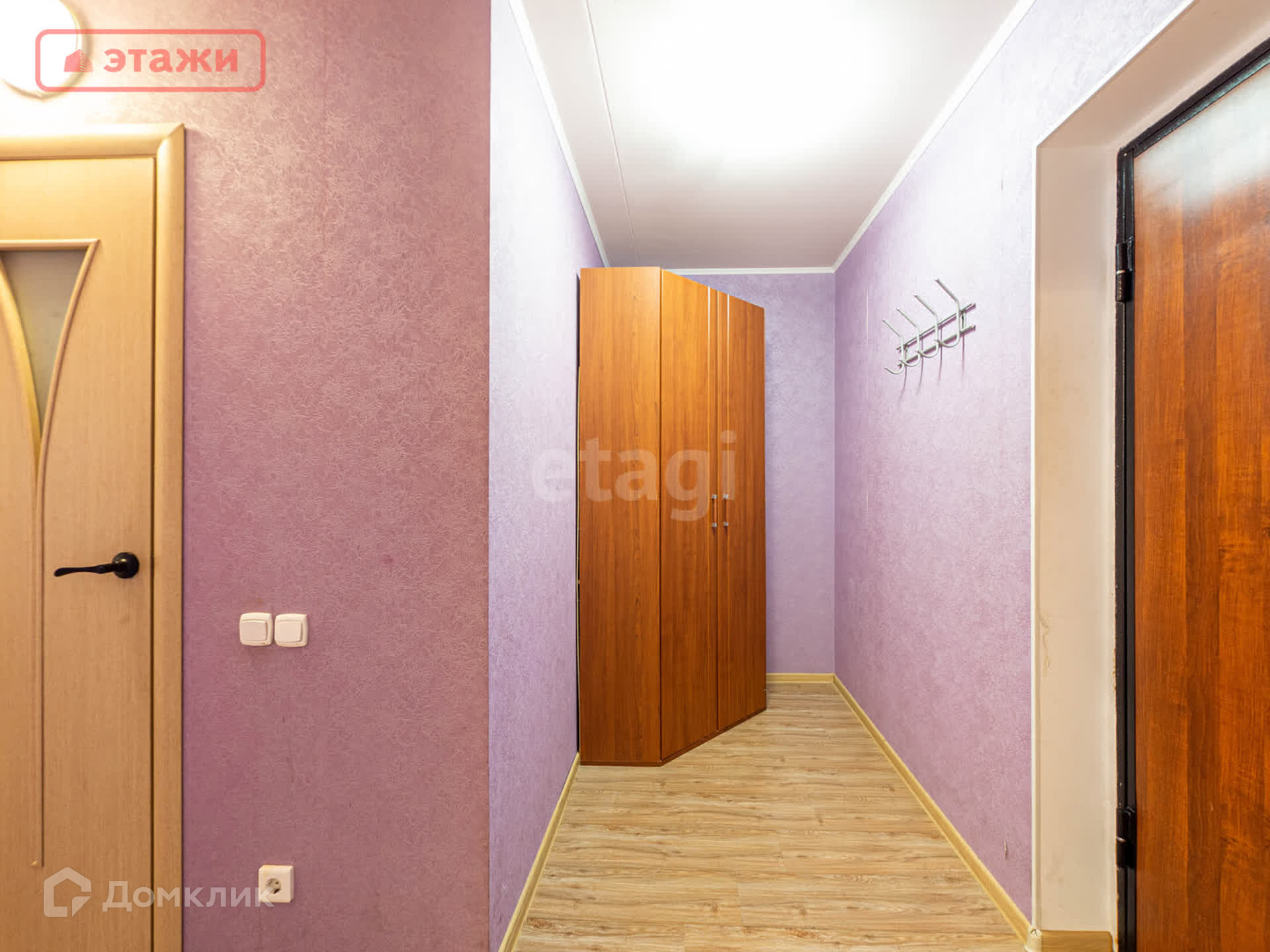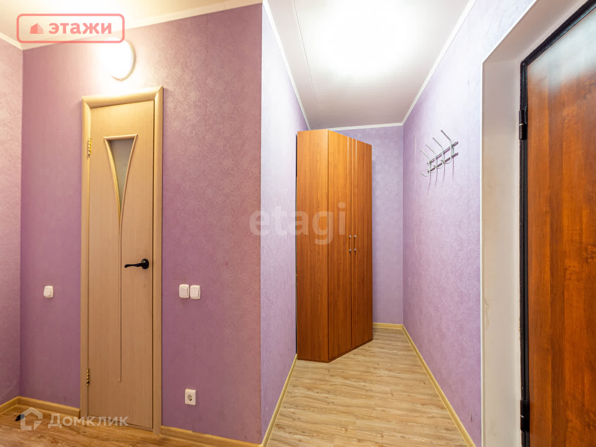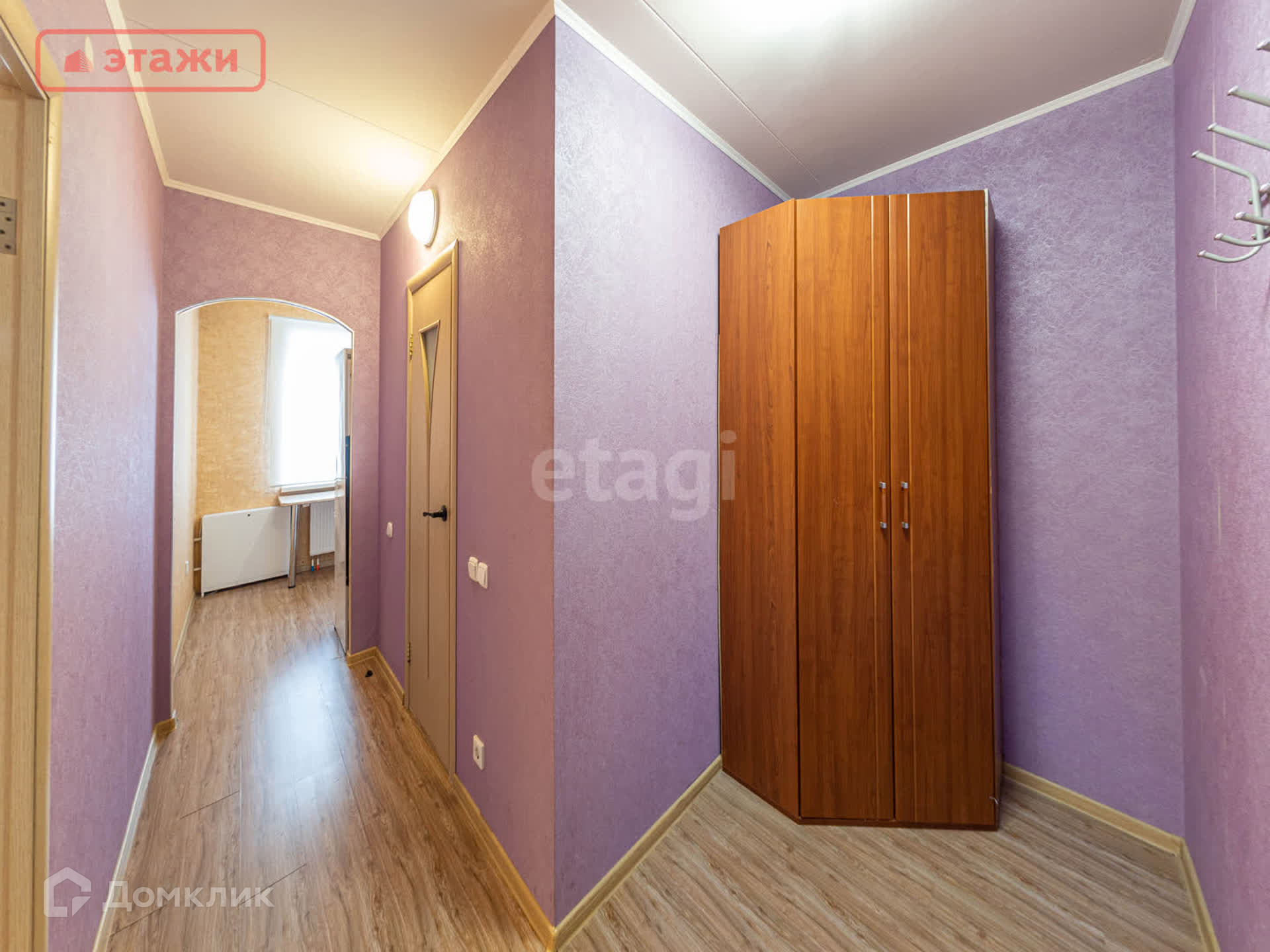 - В прихожей установлены шкаф-купе и вешалки.