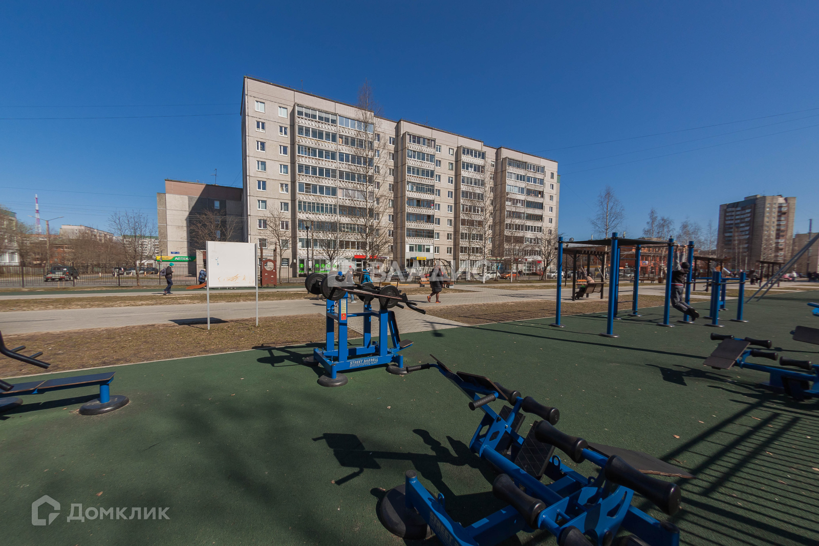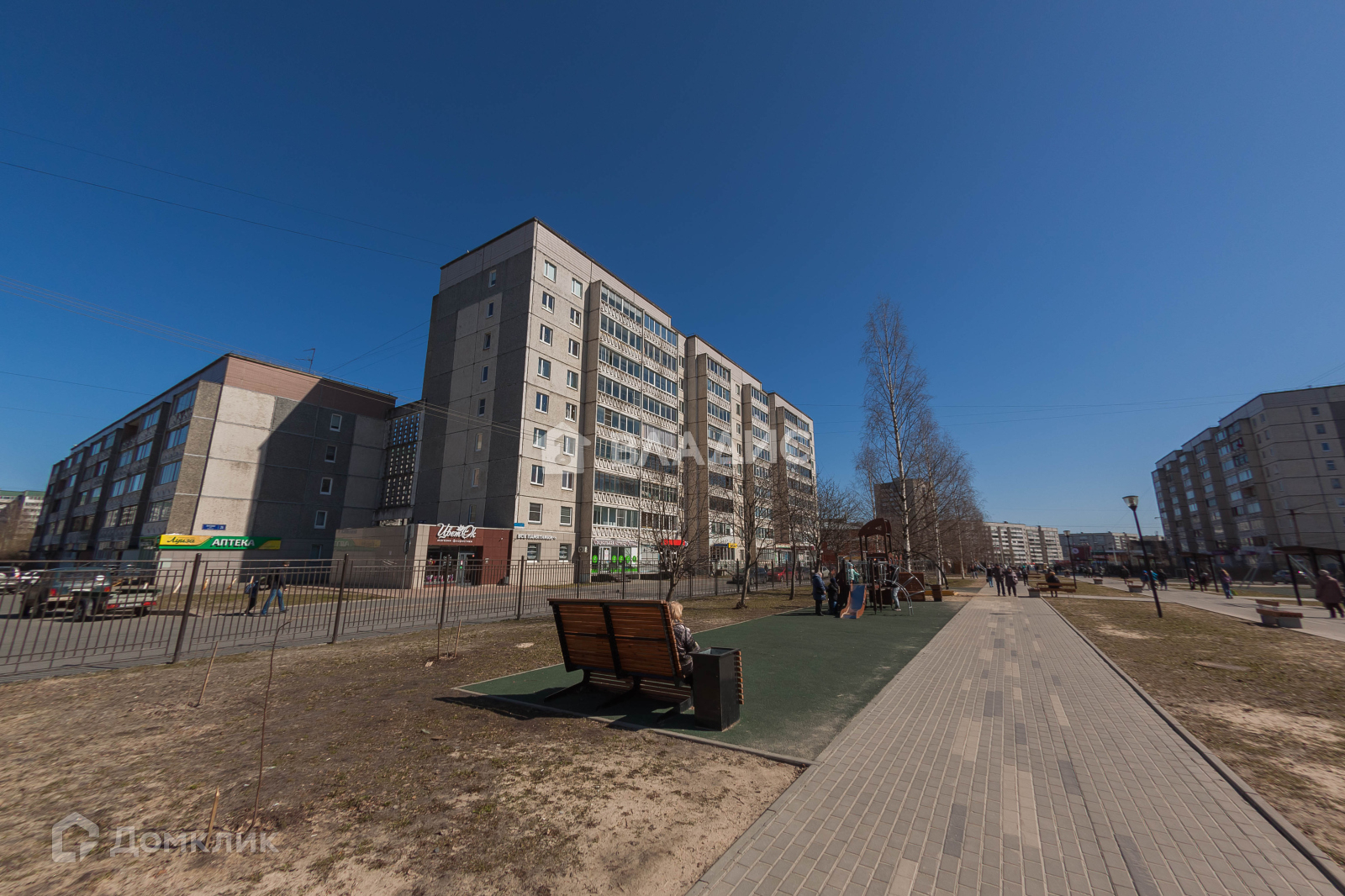 Дом расположен вдоль аллеи, на которую открывается шикарный вид и по которой приятно гулять, насыщая свой организм чистым и свежим воздухом. Для детей есть множество детских и спортивных площадок.