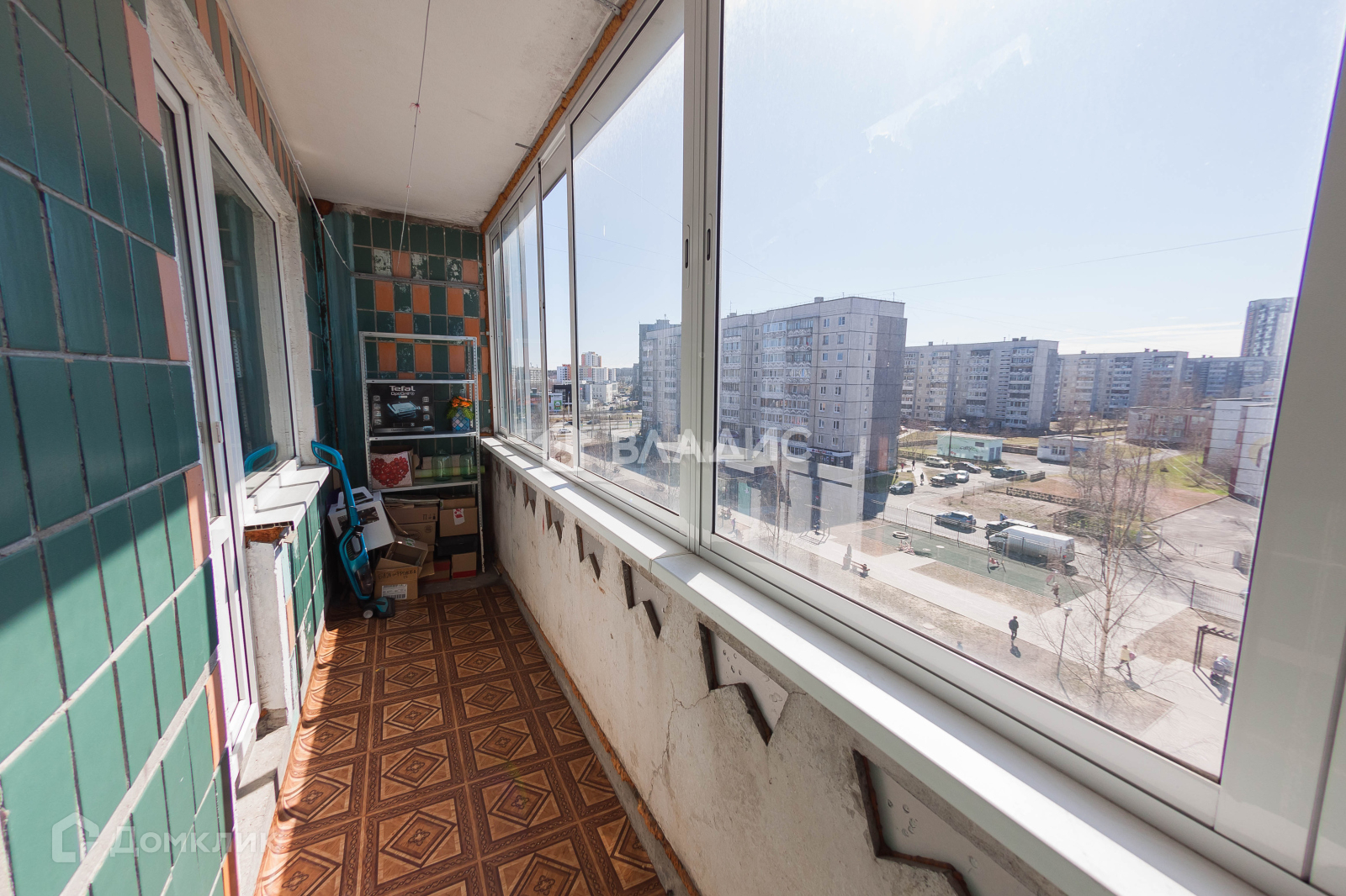 Просторный застекленный балкон с видом на аллею;