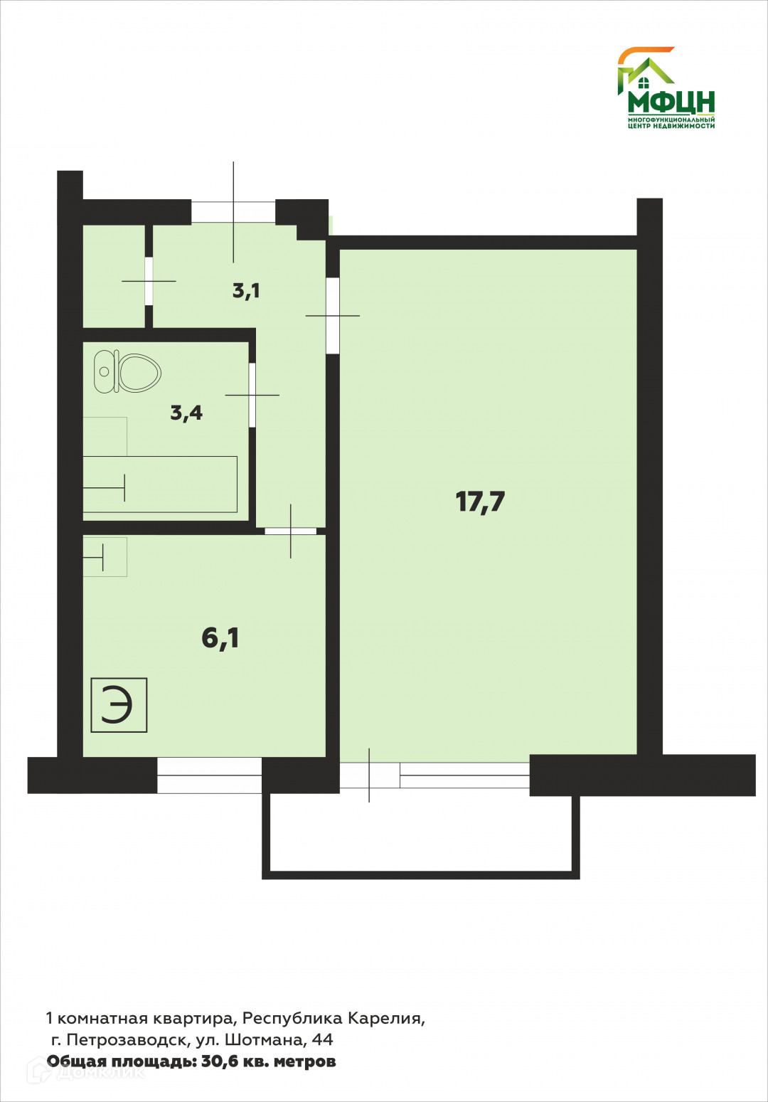 Общая площадь 30.5 м2