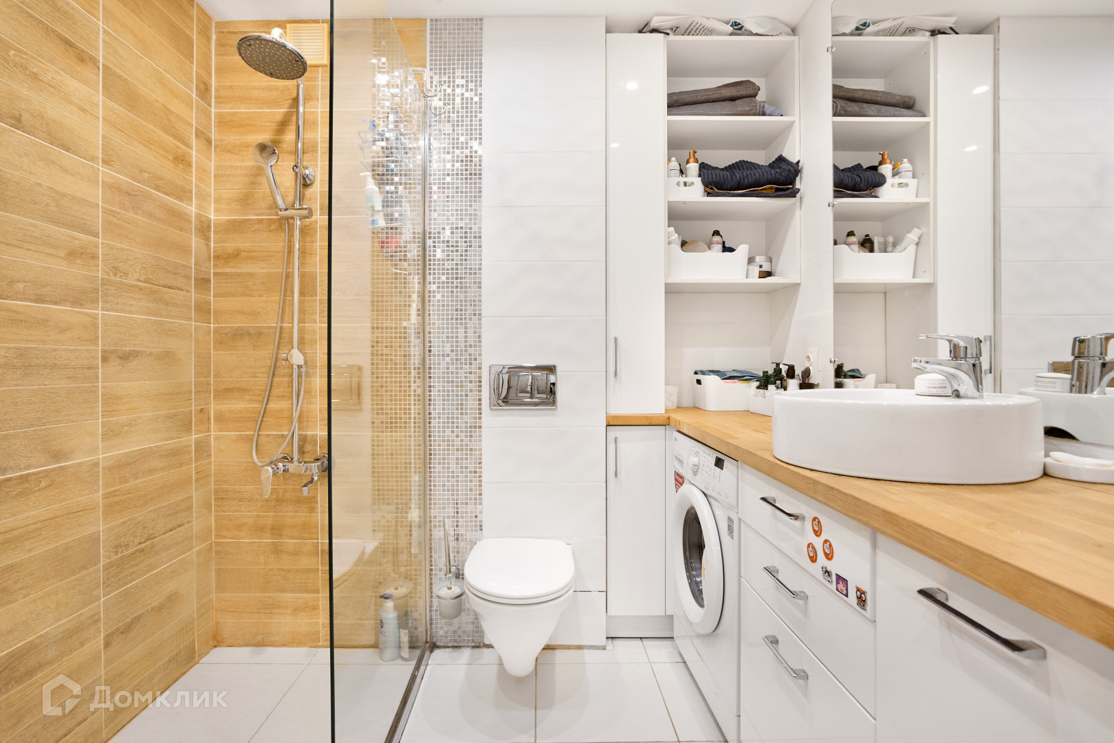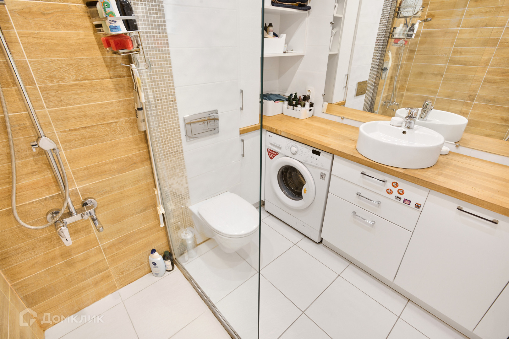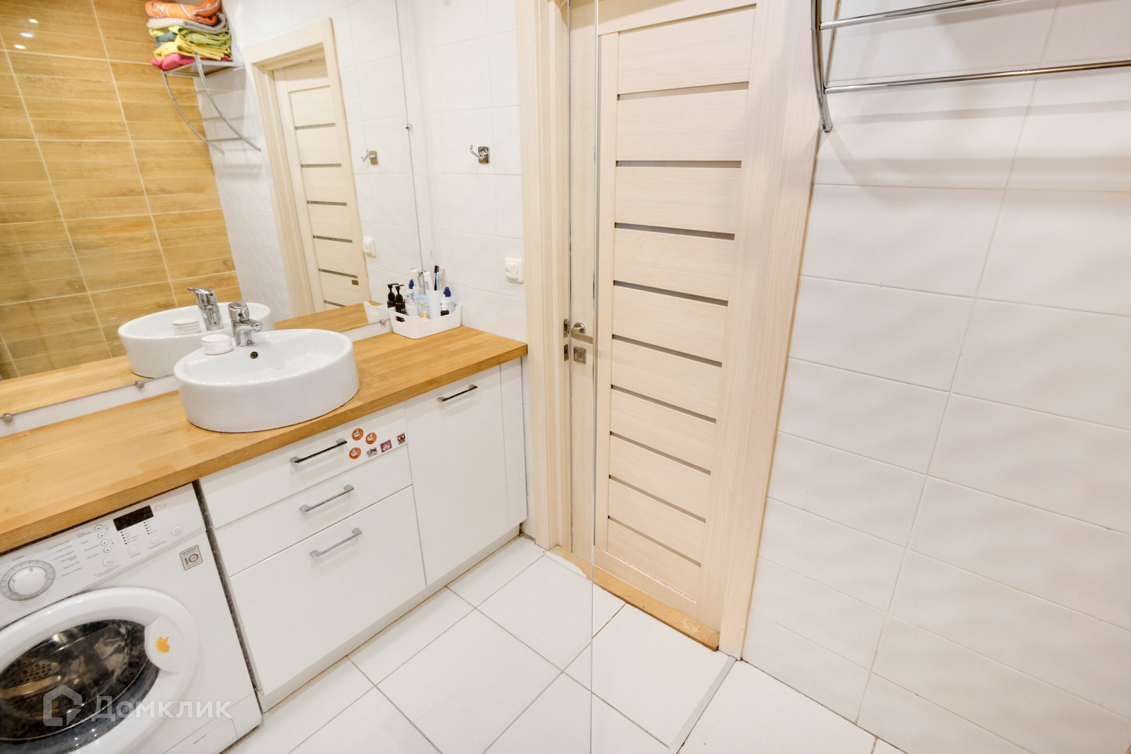 • На полу ламинат, санузел в плитке