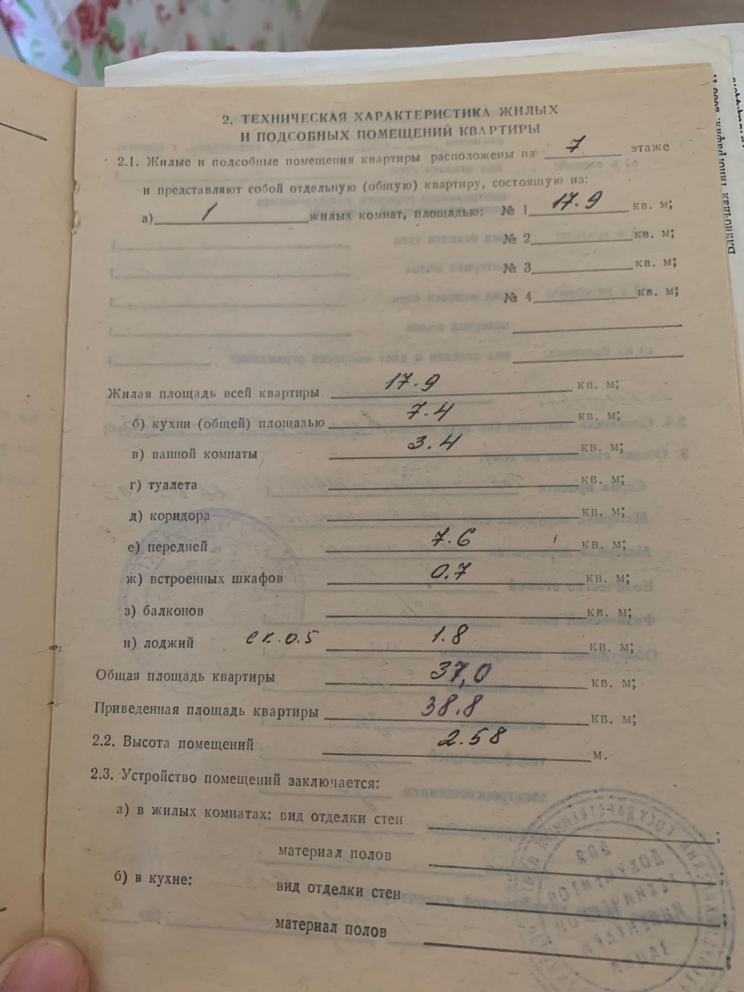 Высота потолков 2.58 м