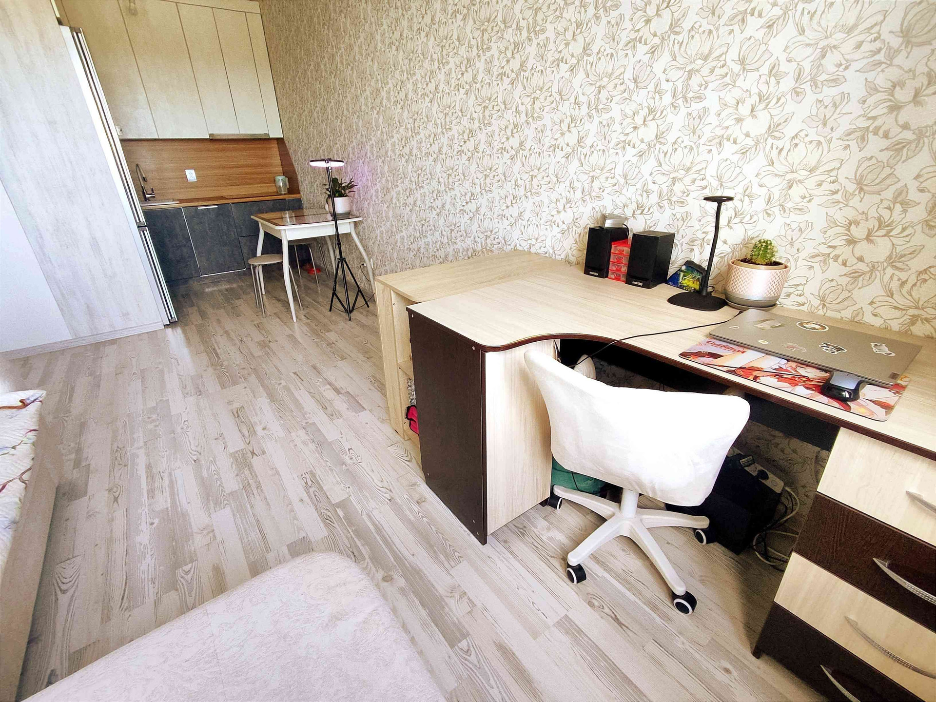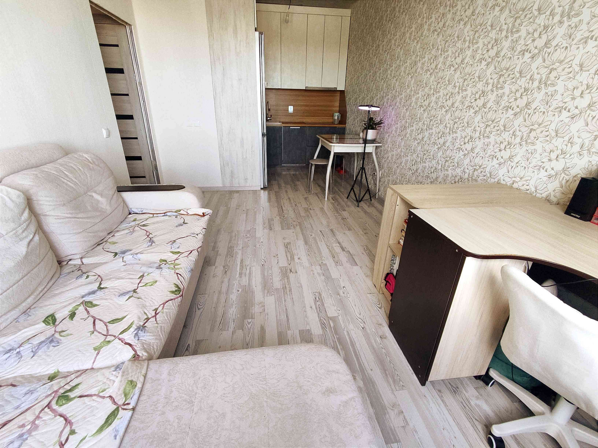 4. Функциональная планировка с отдельной спальной комнатой и выходом на лоджию, вторая комната объединена с зоной кухни