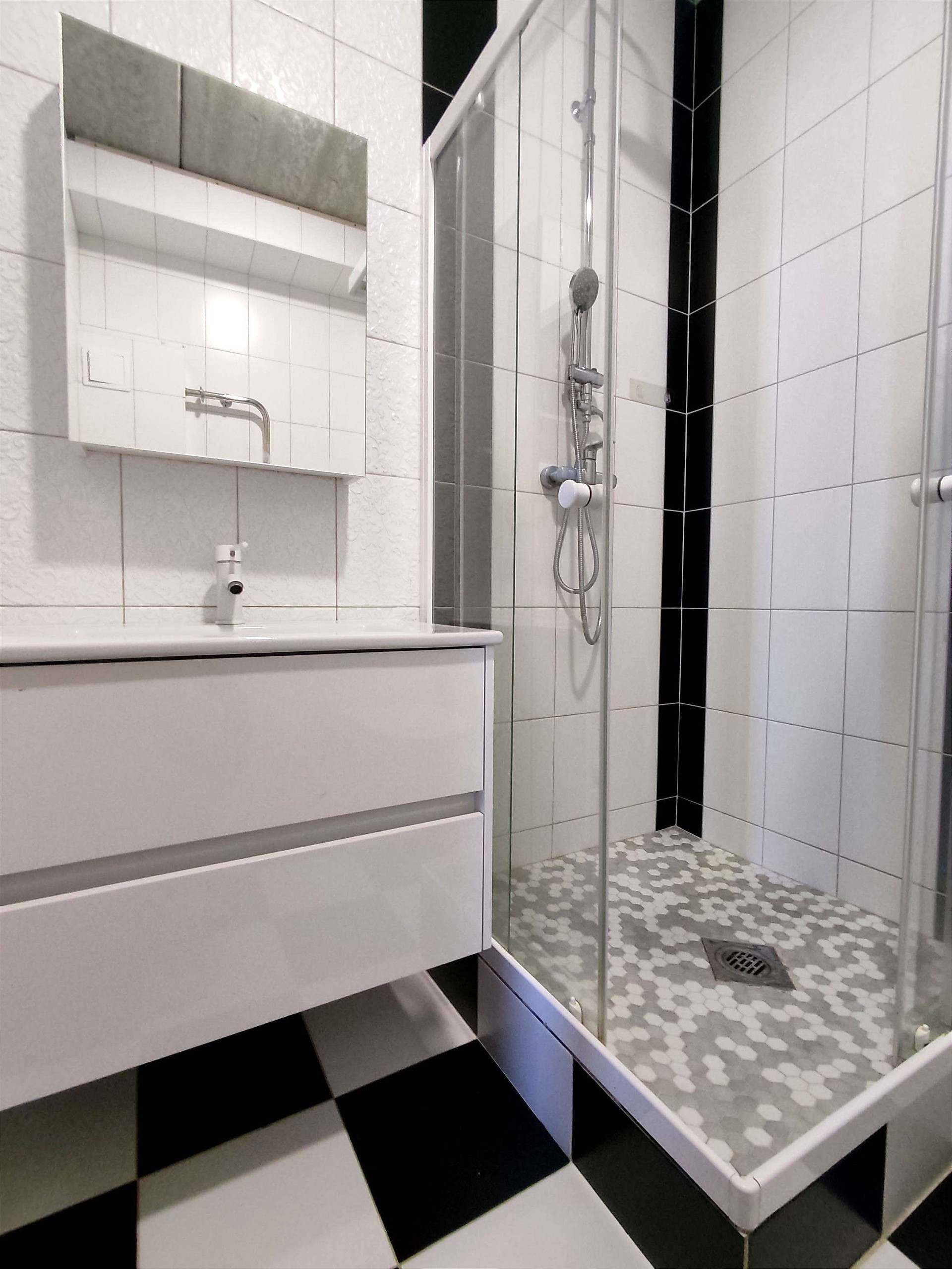 6. в квартире выполнен качественный ремонт: полы- ламинат и плитка в санузле, межкомнатные двери, санузел-кафель, дешёвая кабина