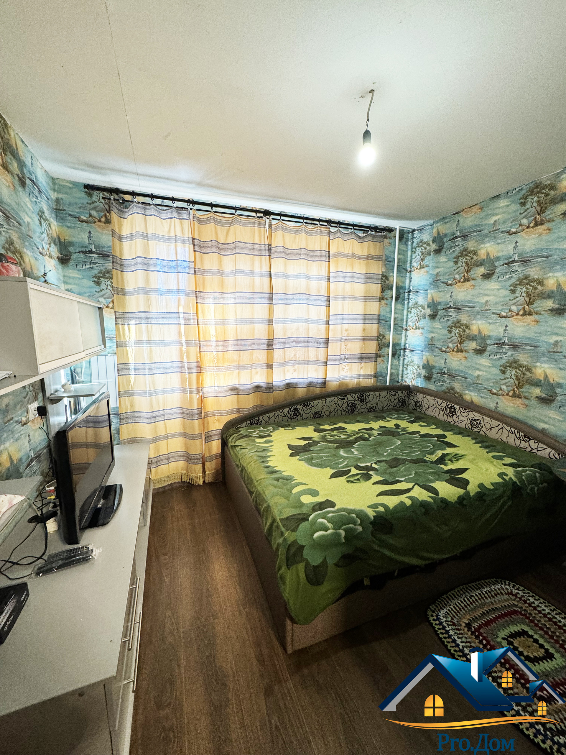 Сделана небольшая перепланировка в большой комнате (разделена комната на две  зоны – зона спальни и гостиная – см. фото)