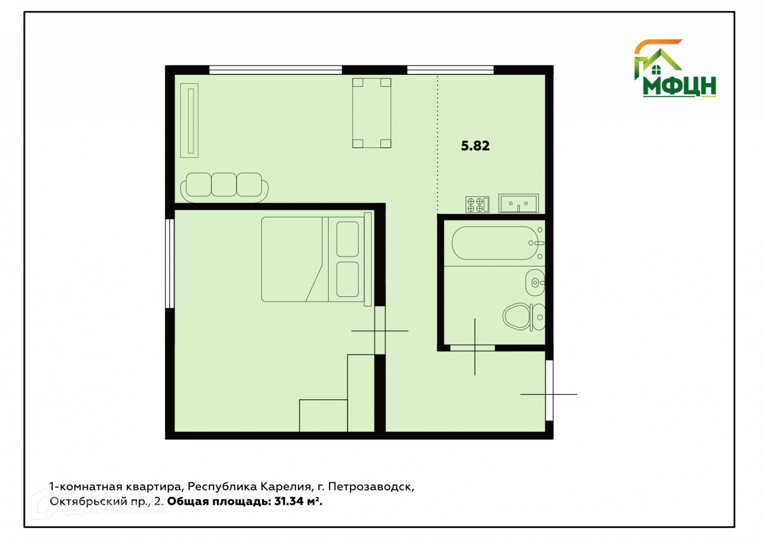 Общая площадь 31.3 м2