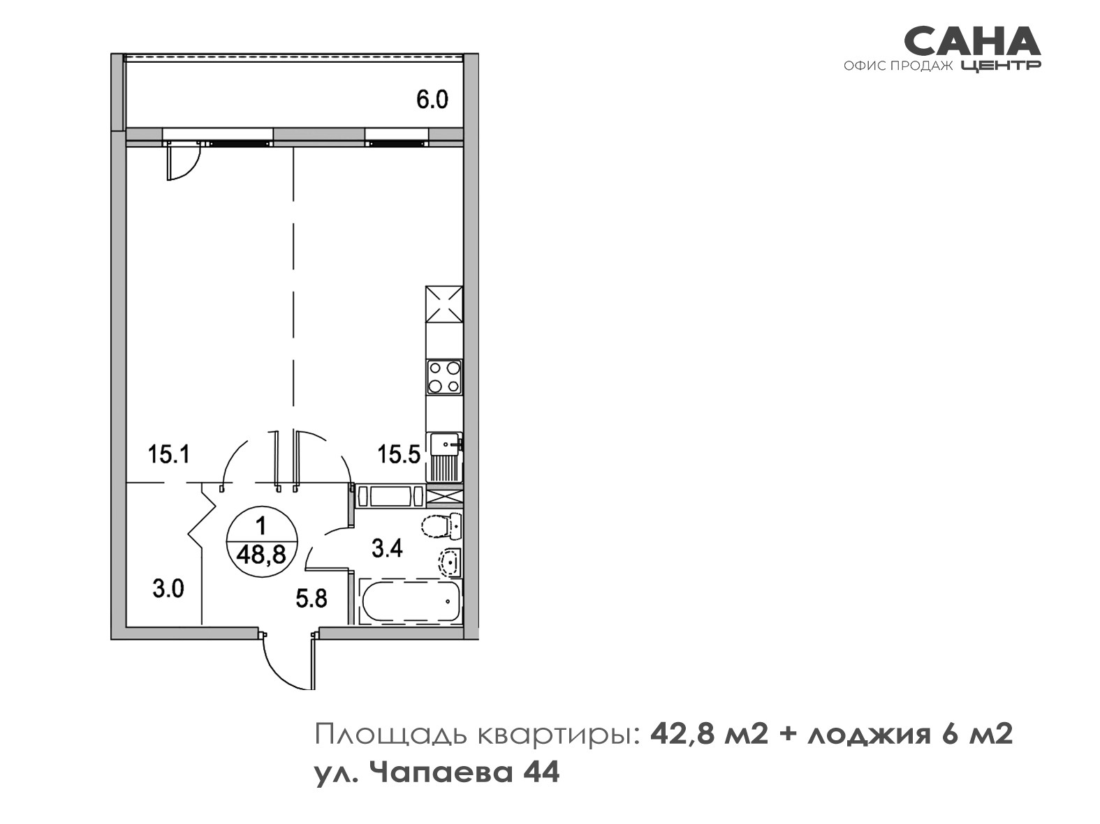 Общая площадь 48.9 м2