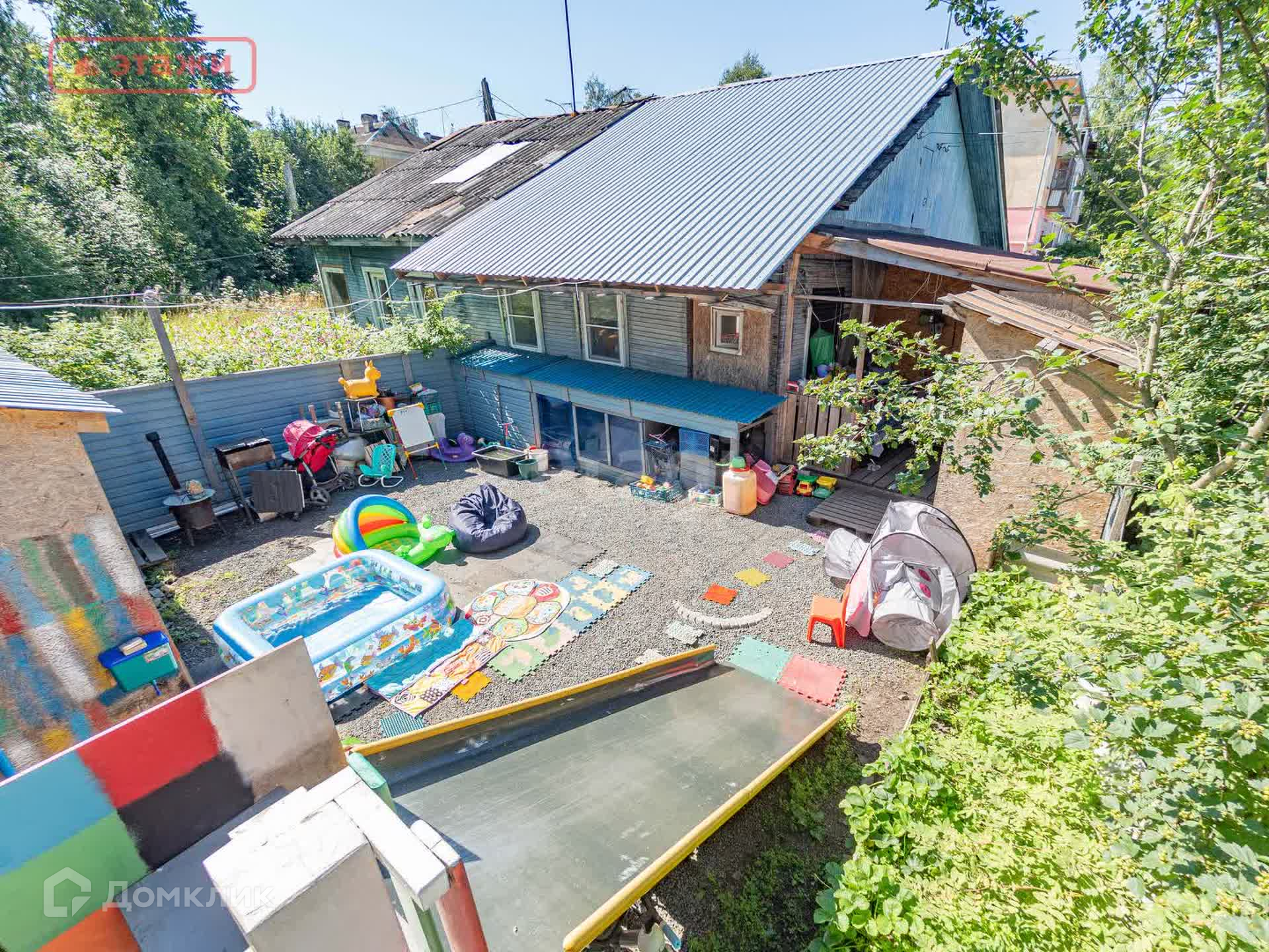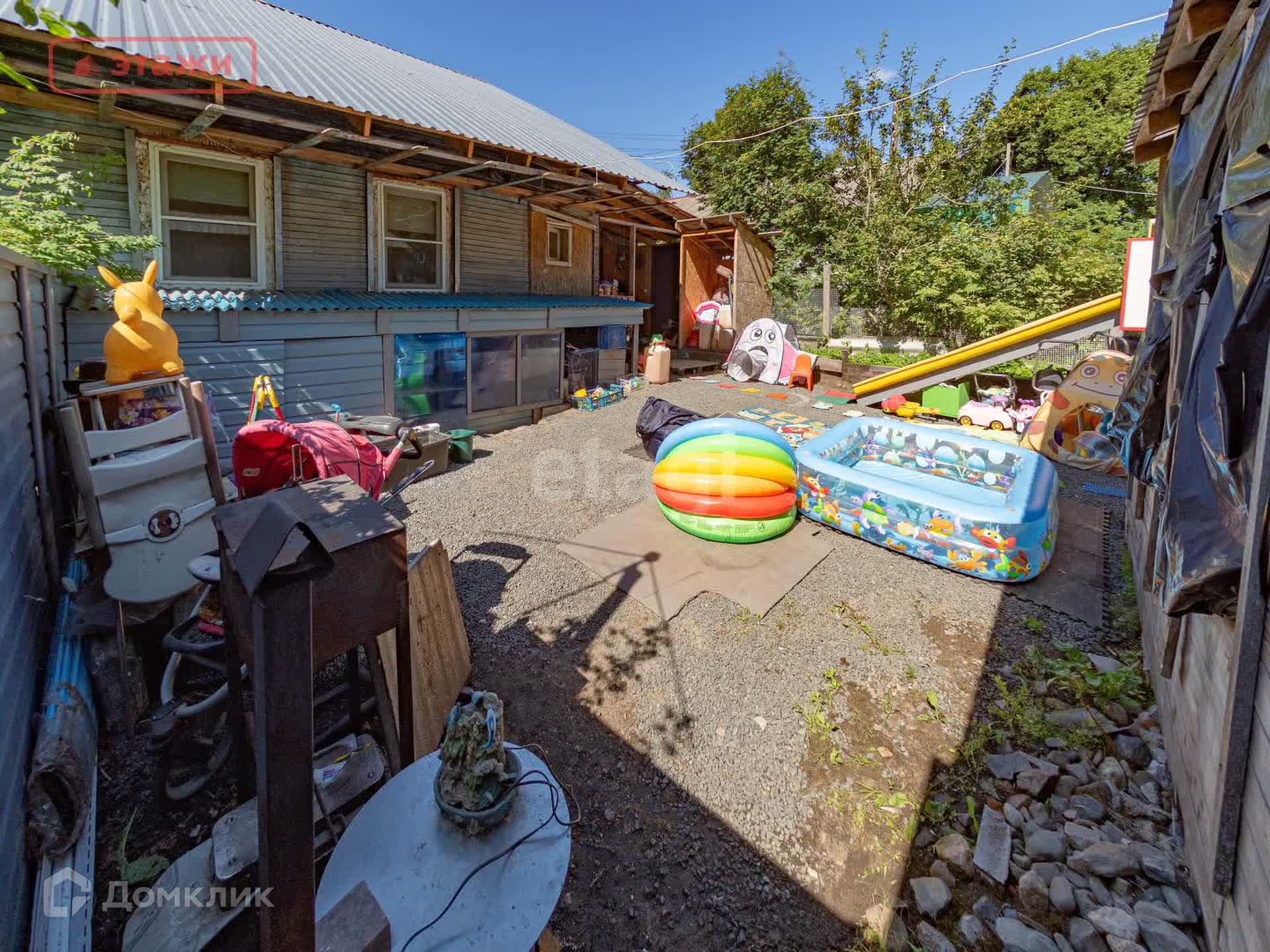 Есть свой двор(2 сотки), можно организовать отличное место для проведения семейного досуга!
