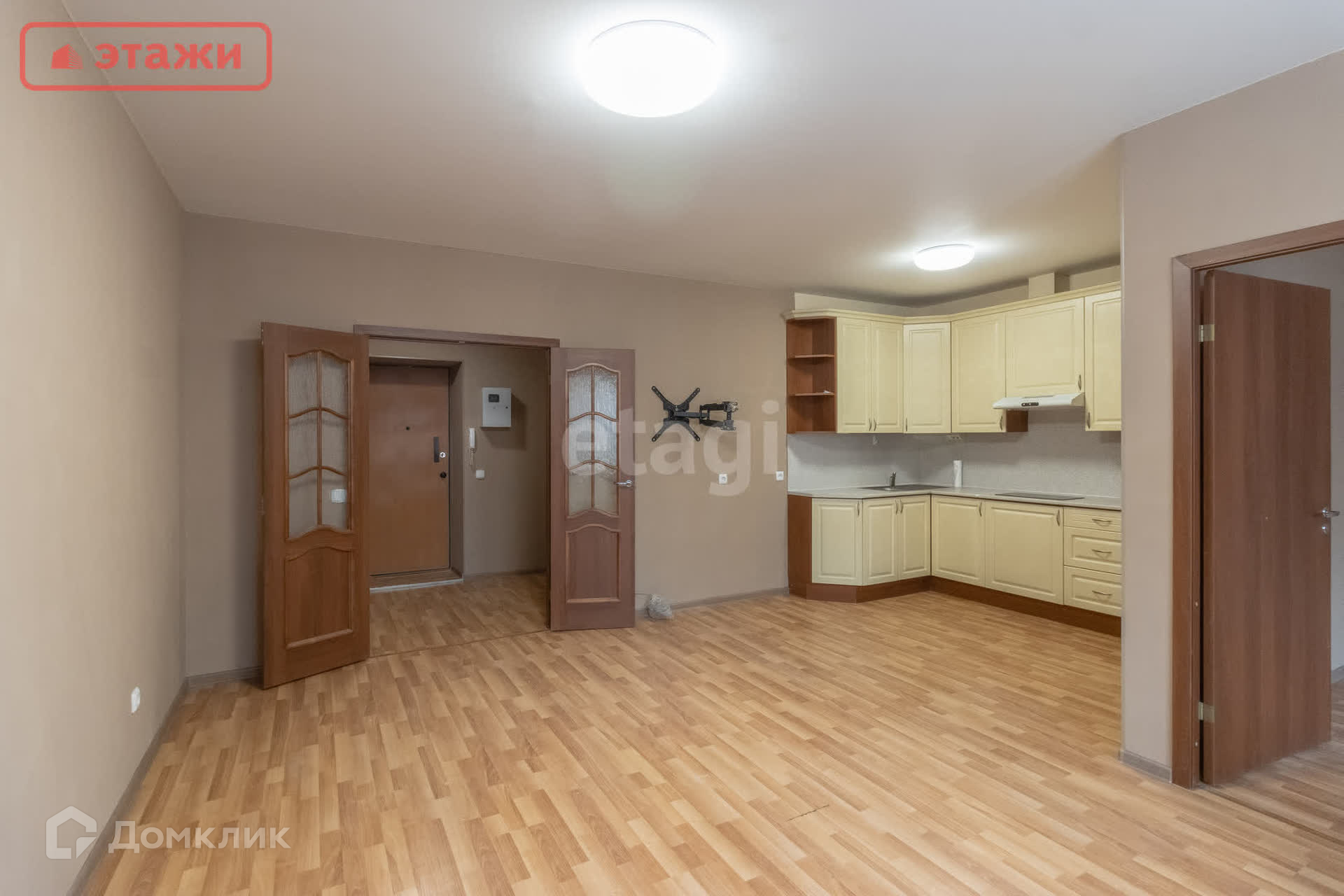 При продаже новым собственникам остается кухонный гарнитур, техника и холодильник.