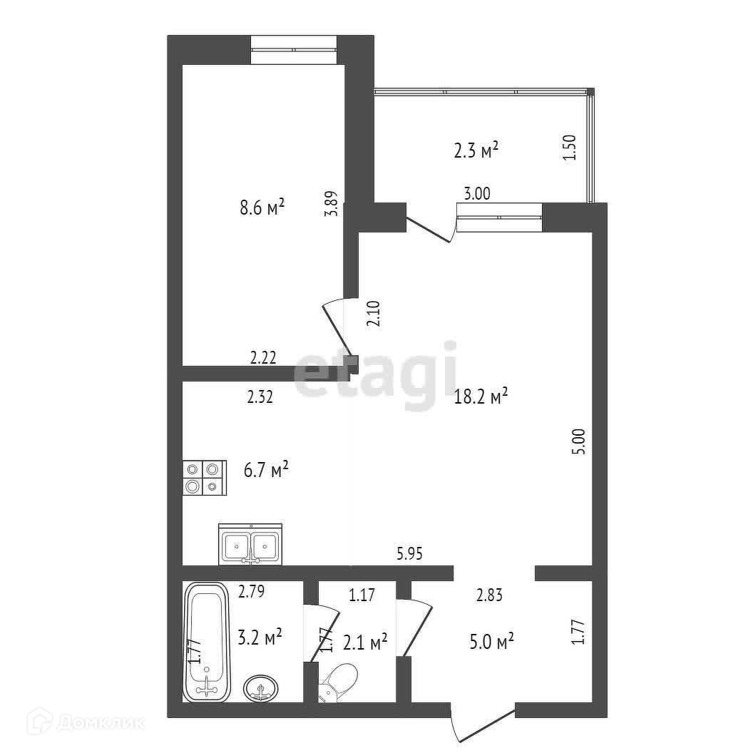 Общая площадь 46.8 м2