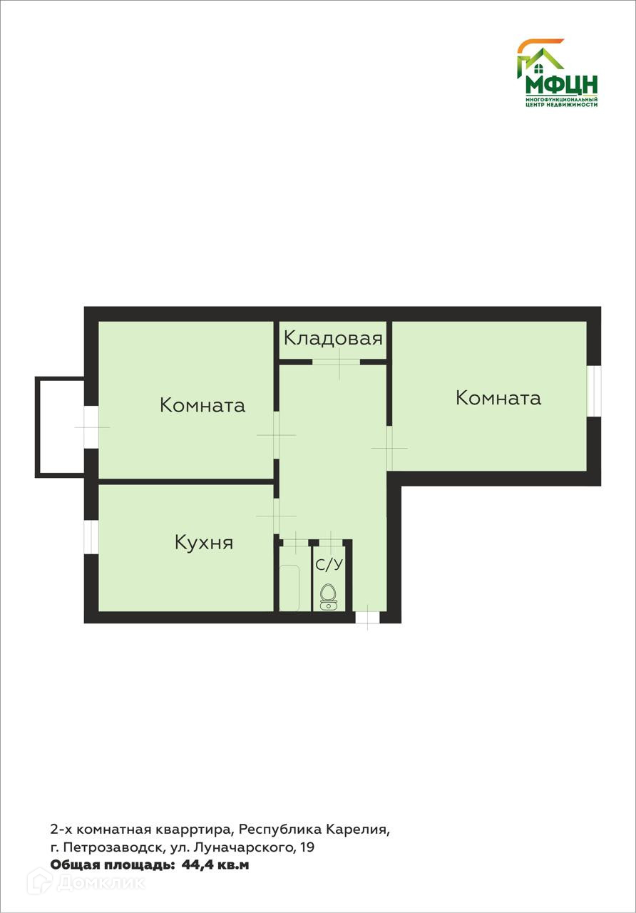 общая площадь 44,4 кв. м