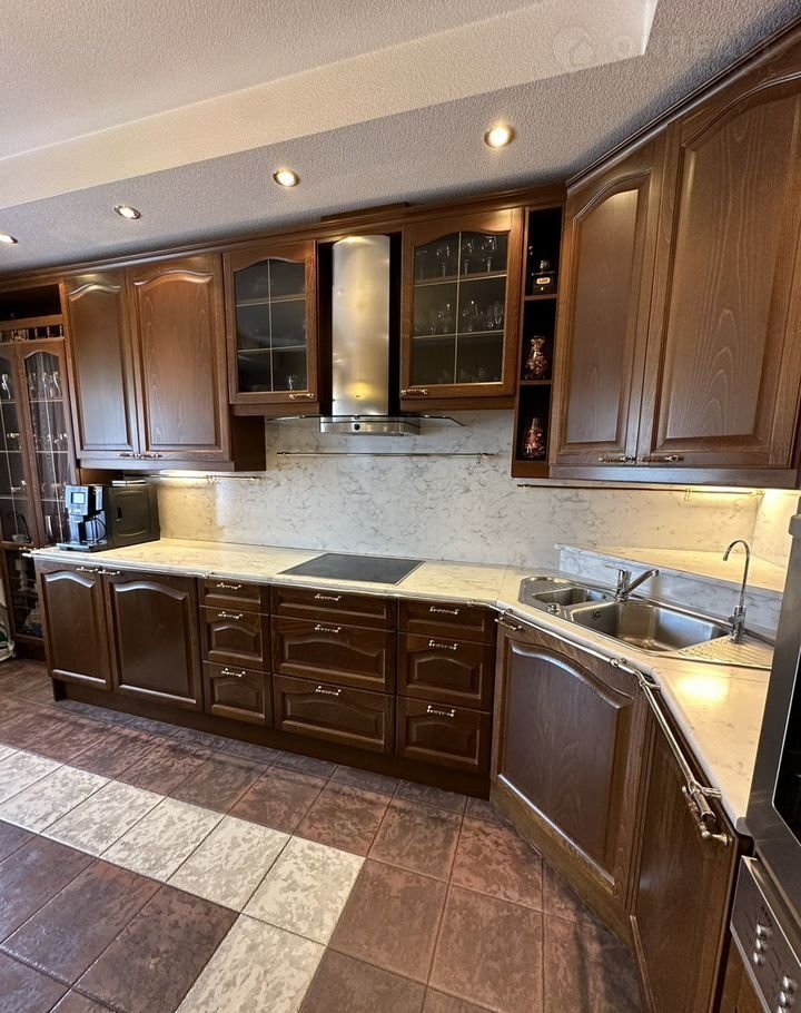 В отделке использованы натуральные вечные природные материалы: лаковый паркет красного дерева, колонны из розового гранита, светильники, Италия, натуральный камень, межкомнатные двери из массива, Испания (качественная фурнитура, звукоизоляция)