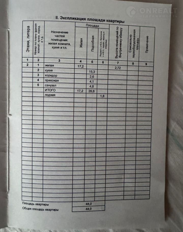 Общая площадь 44 м2