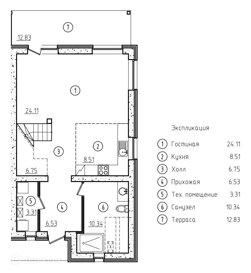 — 4 комнаты 11.4+11.1+20.79+24.11 м2;