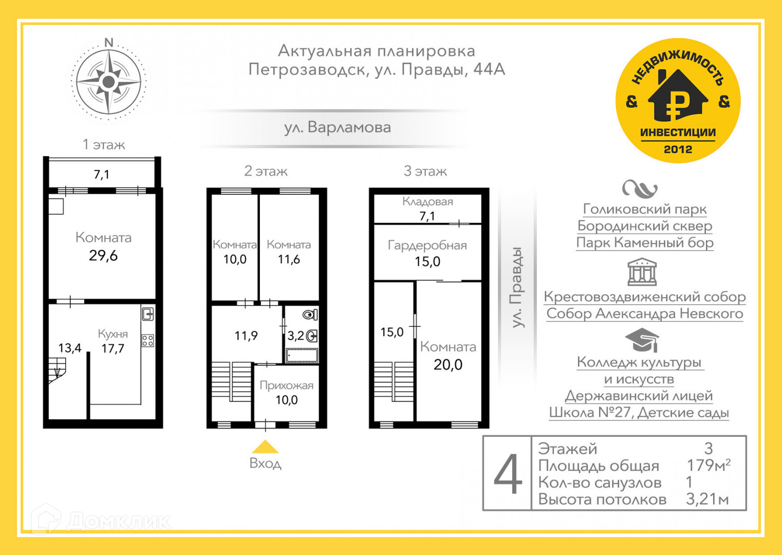 3-этажный таунхаус, 179 м2, на продажу в Петрозаводске, улица Правды, 44А