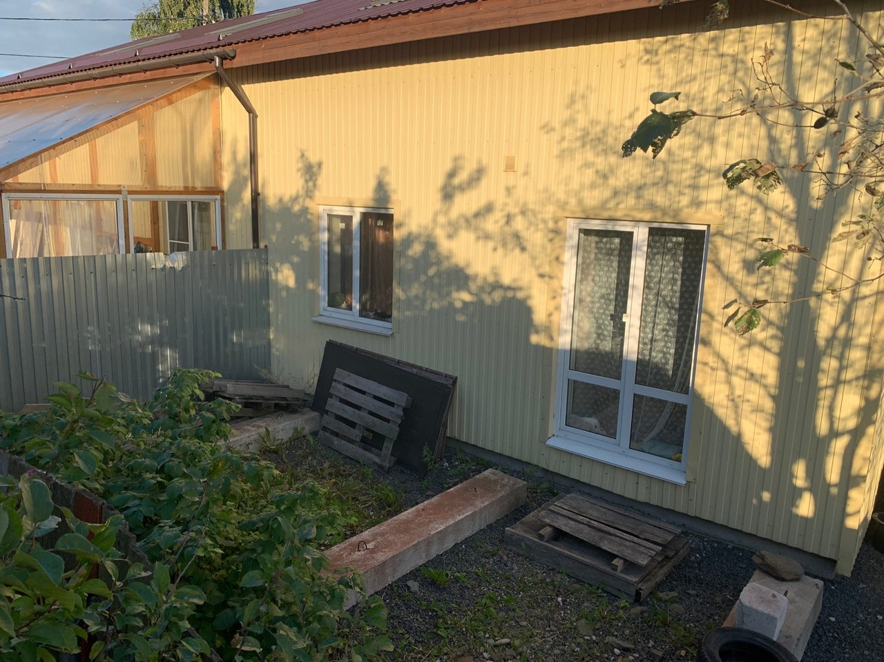 Участок пока не благоустроен-но есть возможность реализовать свои фантазии и дизайнерские таланты.На участке растут яблоня,малина,вишня.