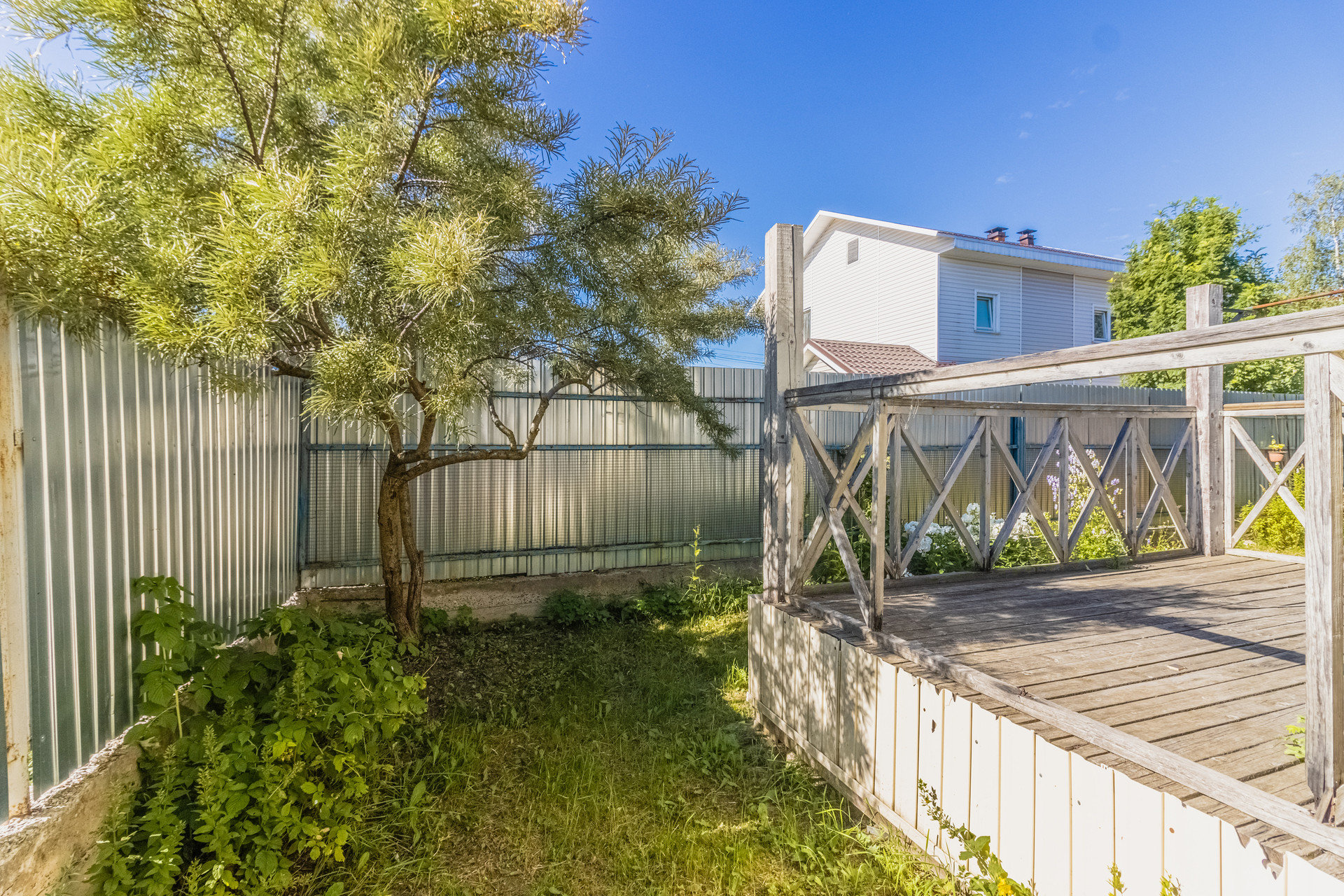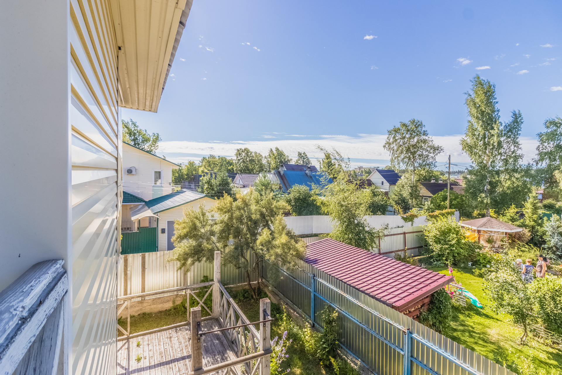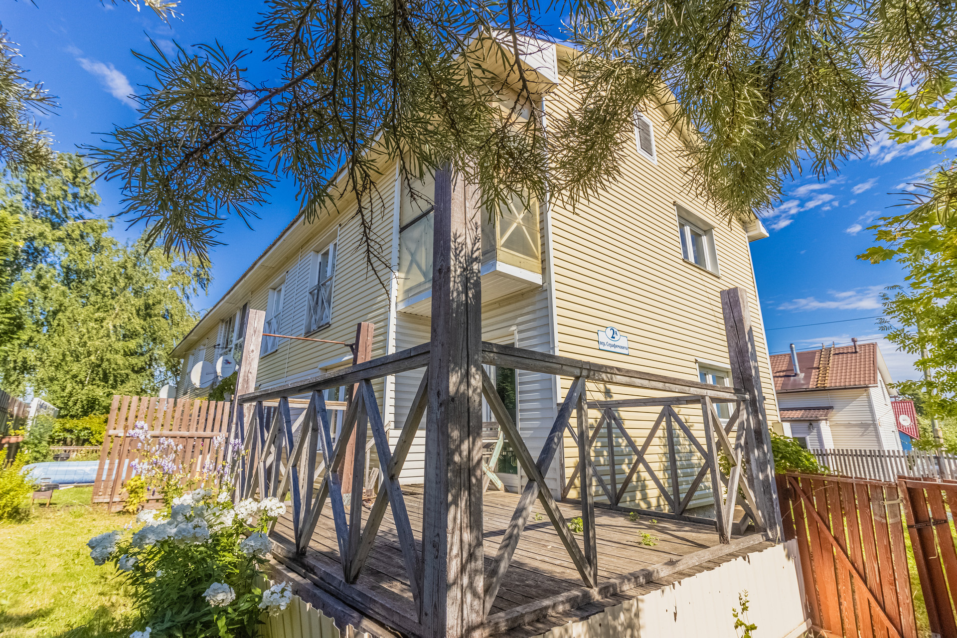 Дом расположен в тихом месте, вдали от оживленных трасс, огорожен забором. На участке много зеленых насаждений, имеется собственная зона отдыха и парковочные места.