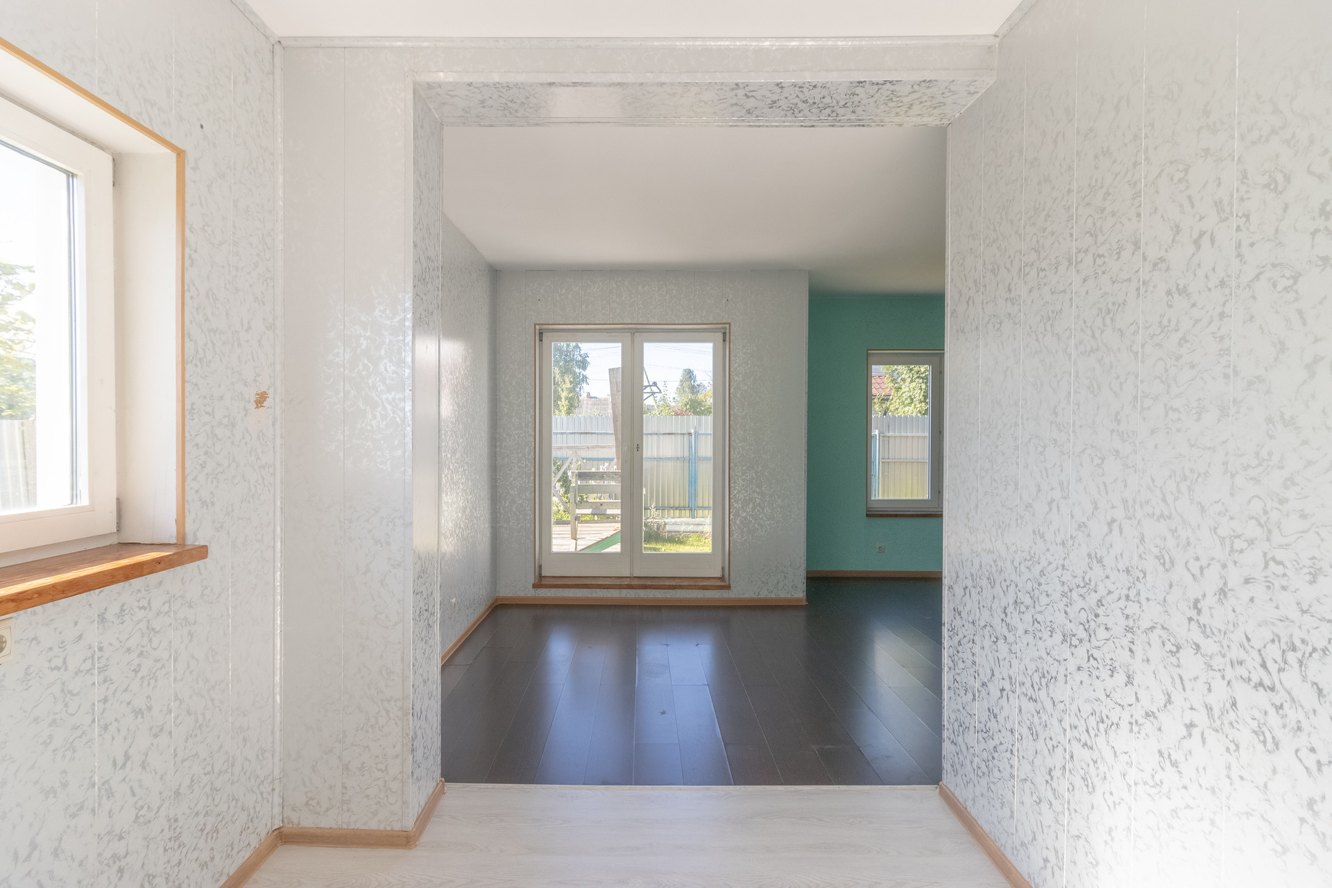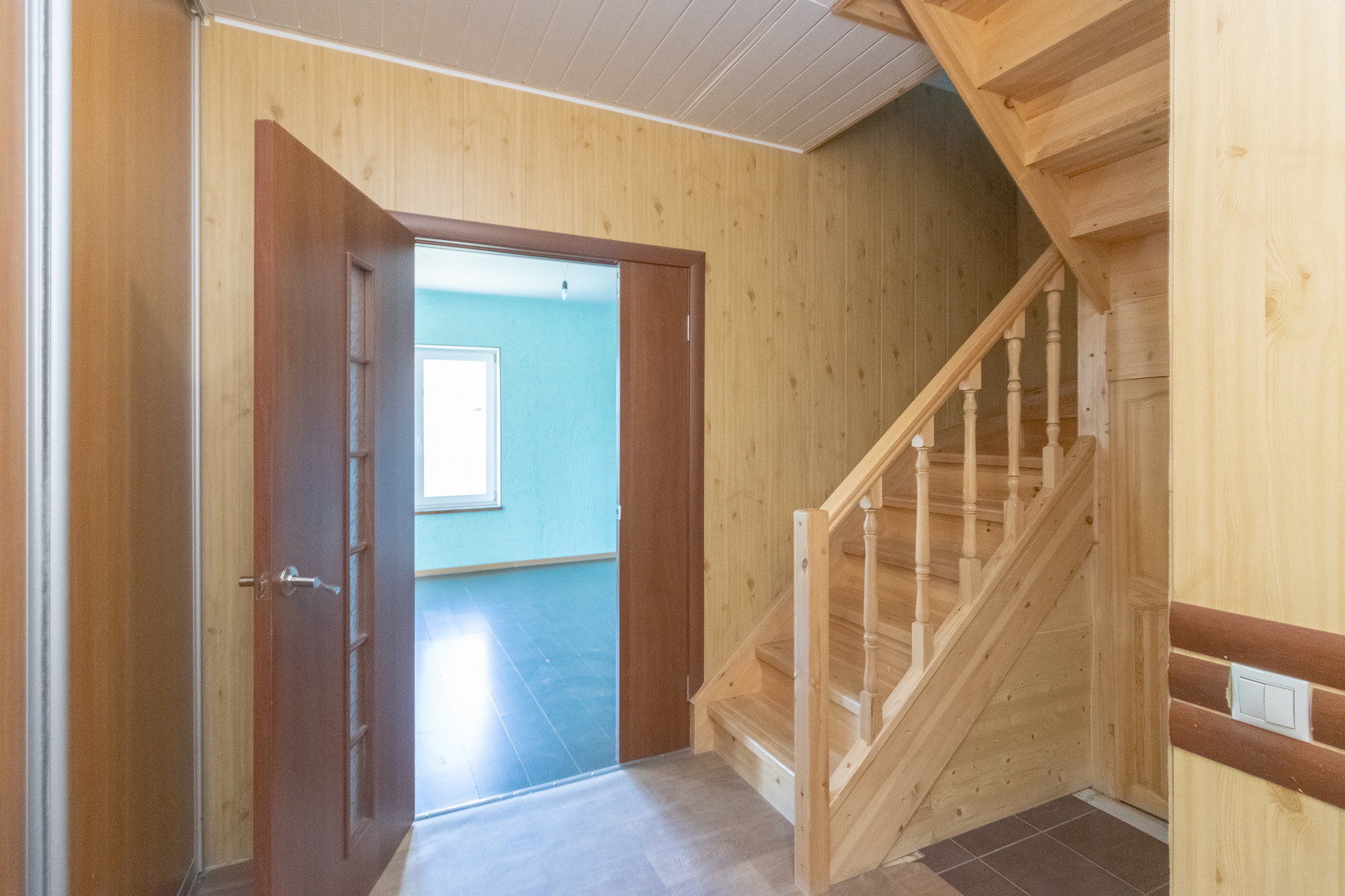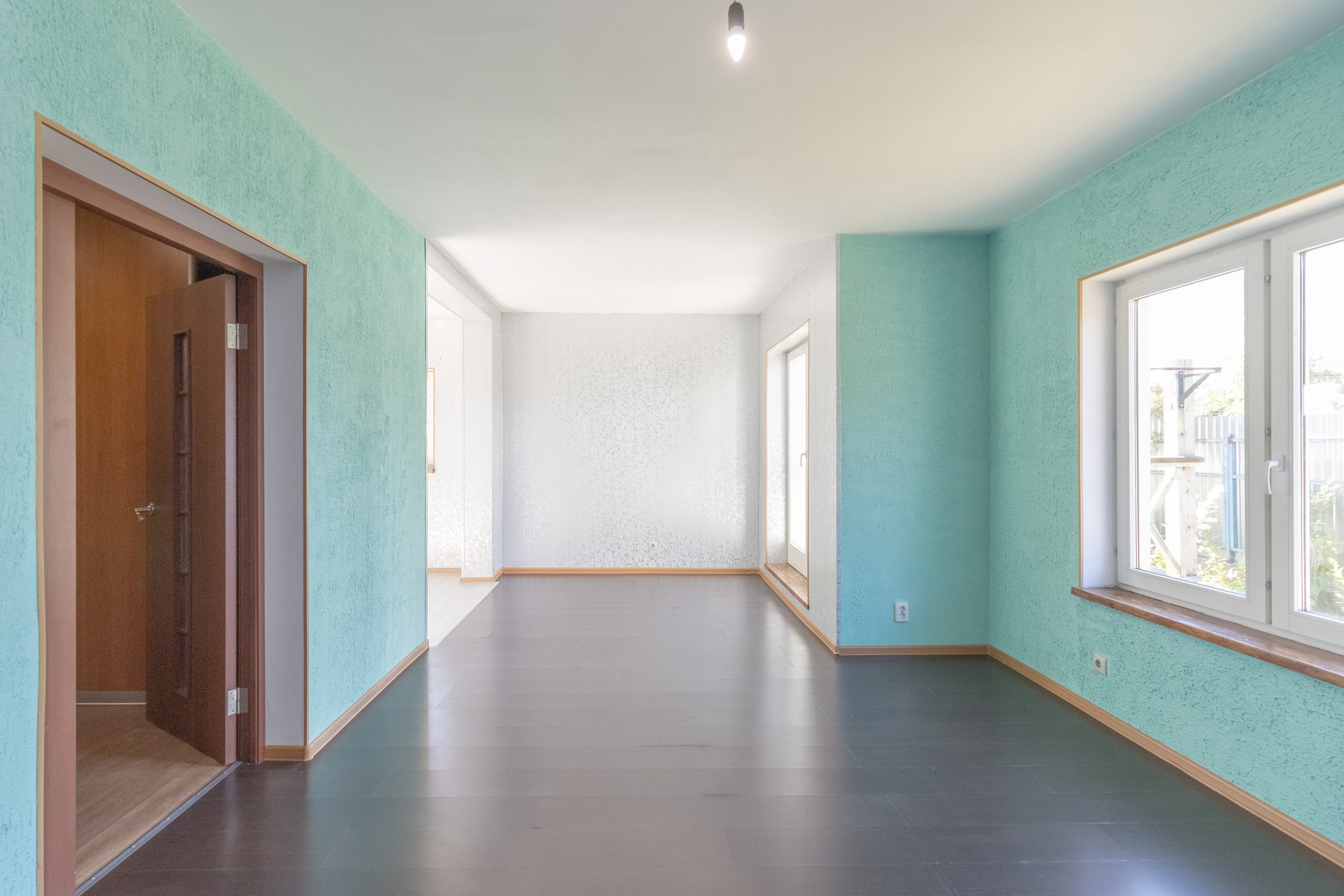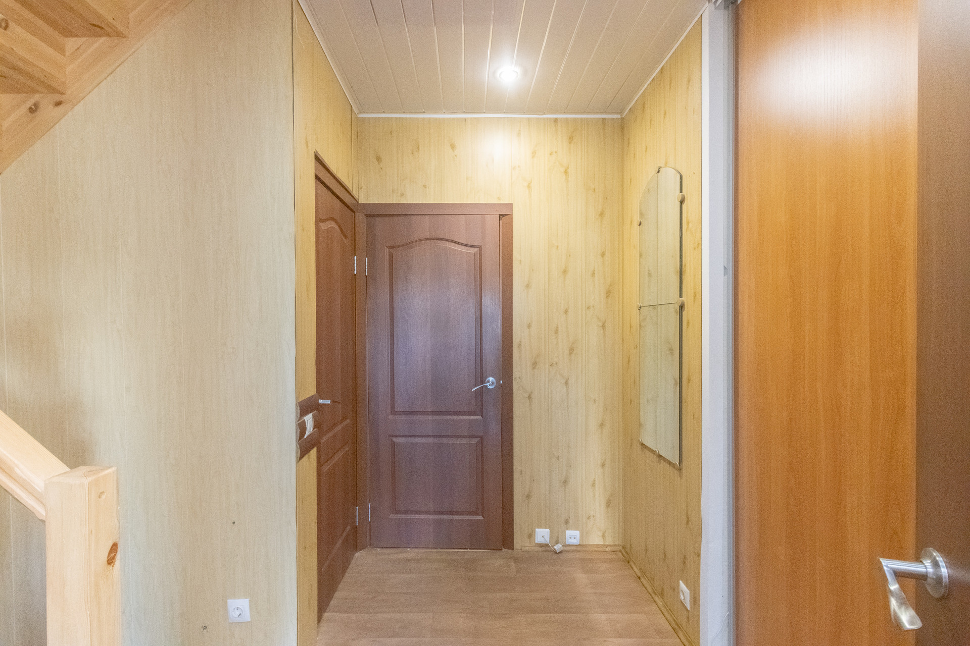 На 1 этаже: тамбур, коридор, большой зал с панорамными окнами, кухней и выходом на задний двор, туалет, кладовая. На 2 этаже: три спальные комнаты, одна из них с балконом, коридор, санузел (туалет и ванна). Дом из газобетоновых блоков. Холодная вода и канализация центральные, отопление конвекторы. Установлен бойлер. Очень низкие коммунальные платежи.
