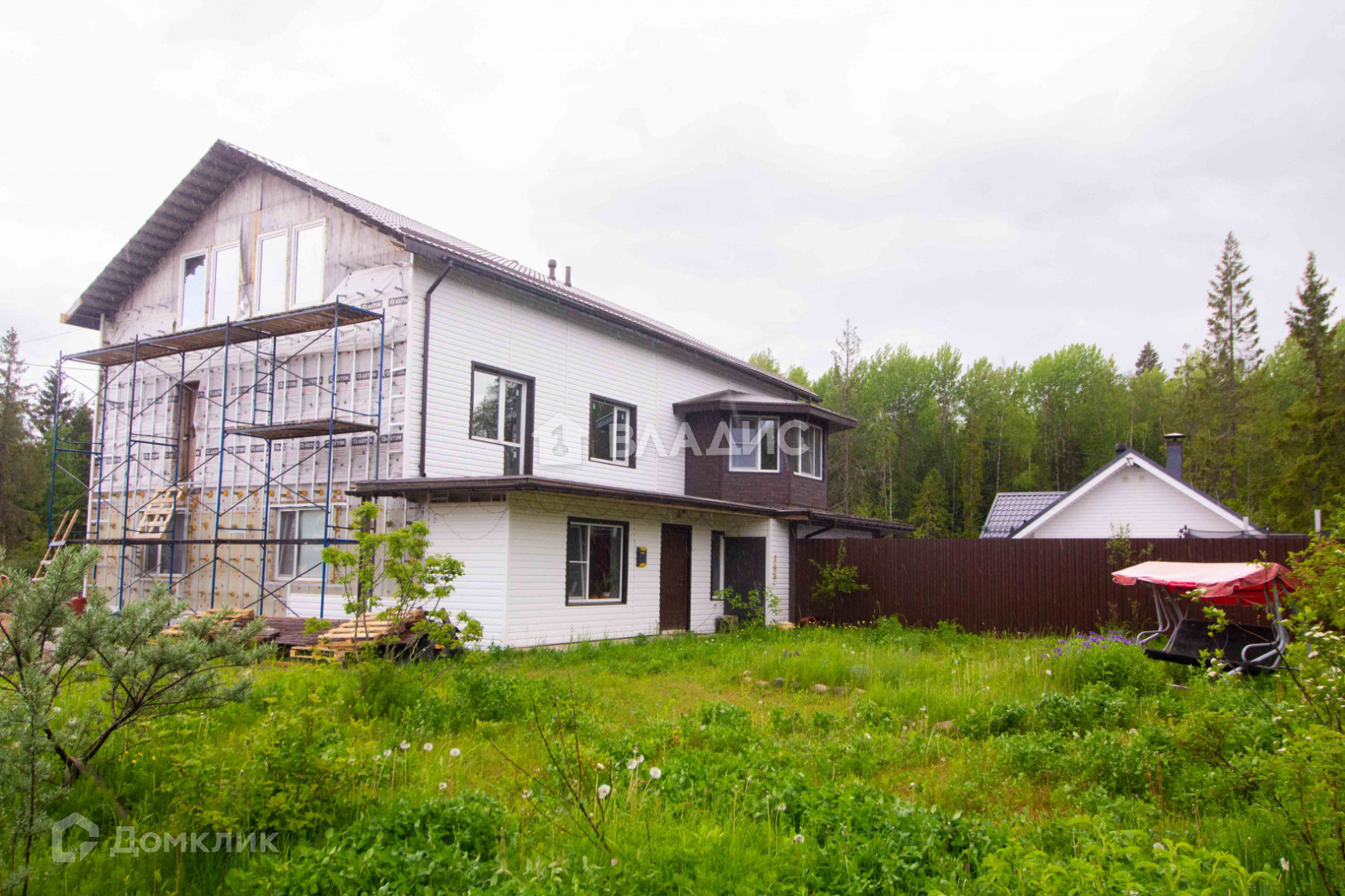 На сегодняшний день все леса убраны, что на фото, и дом полностью обшит.