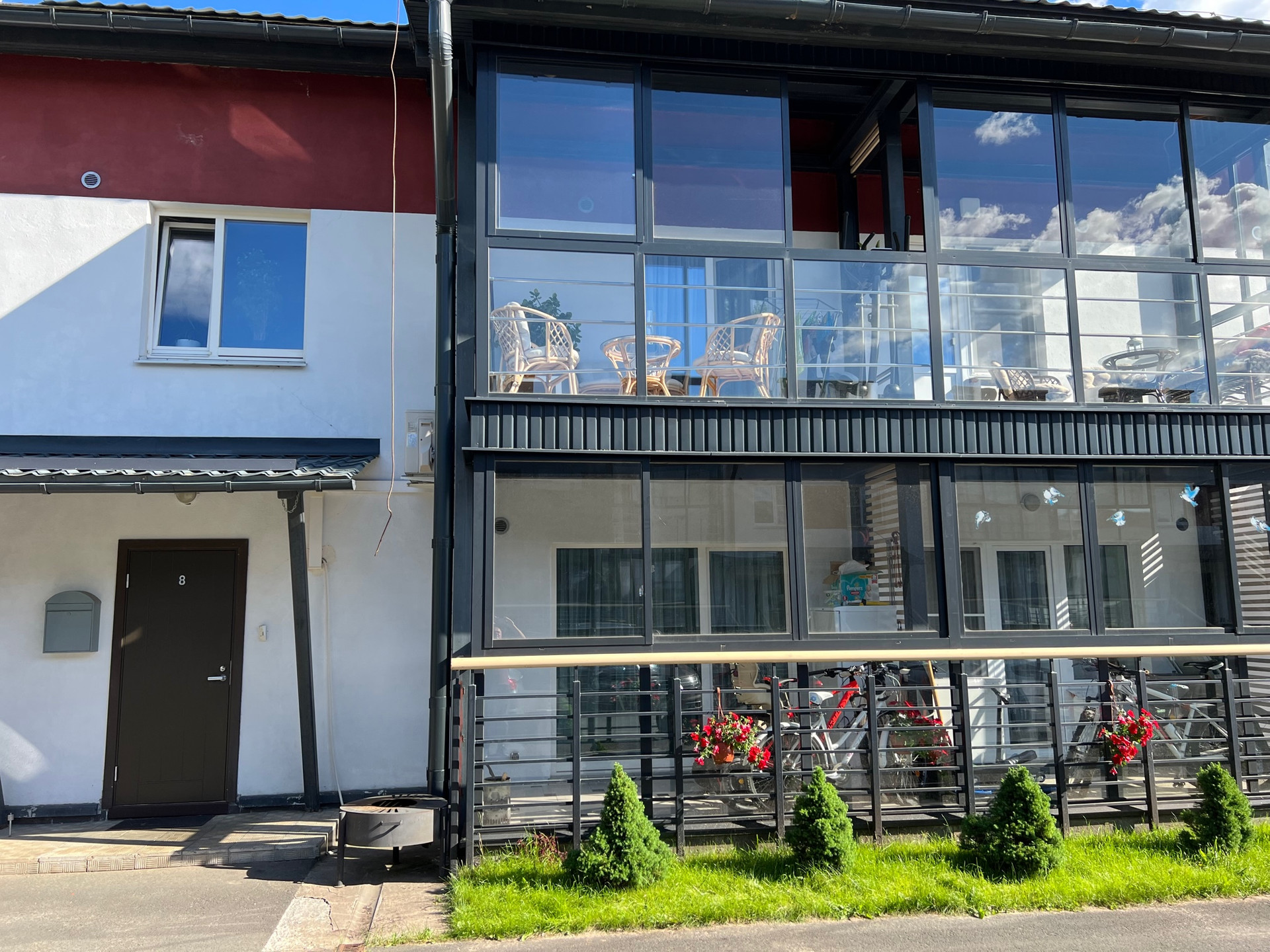 Таунхаус в жилом комплексе «Снегири», окружён лесным массивом, расположен на собственном участке земли, два парковочных места, шлагбаум, дом кирпичный, очень тёплый. Отопление: тёплые водяные полы (без эл.конвекторов) с индивидуальной настройкой температуры в каждой комнате, очень экономичные и комфортные, панорамные деревянные окна. Первый этаж: кухня-гостиная, гостевой с.у и первый балкон. Полы керамогранит, фасады кухни натуральный шпон, техника на кухне вся новая (Bosch). Кондиционер ( бесшумный). Второй этаж: две жилые раздельные комнаты, большой совмещ. с.у., с тропическим душем, ванной, на этаже имеется второй балкон ( с зоной отдыха). Третий этаж (мансардная): просторная спальня, стеклянная небьющиеся перегородка, скрытые места для хранения вещей, кладовка. Лестница выполнена из ступеней дуба и небьющегося стекла. Таунхаус оборудован качественной сантехникой и итальянскими светильниками под заказ, везде установлены премиальные межкомнатные двери Titul , входная финская дверь с замком Abloy. Имеется подвальное помещение 40 кв.м. Фактически танхаус больше по кв.м В 3 мин. ходьбы, торговый центр «Лотос Плаза, Сигма, рядом школы, дет.сад, остановка, удобный выезд с города, 5 мин до центра. Небольшие коммунальные платежи. Прекрасные соседи. Возможен вариант продажи с мебелью.