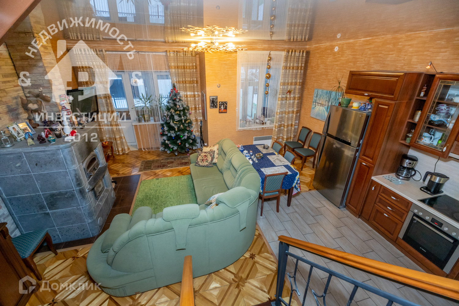 На первом уровне просторная гостиная  комната 39,1 кв.м., совмещенная с кухней. В комнате установлен камин Tulikivi. Так же имеется балкон, с выходом на задний двор. С коридора можно попасть в гараж 22,1 кв.м. Кухня разделена на рабочую и обеденную зоны. Кухонный гарнитур остается новым собственникам.