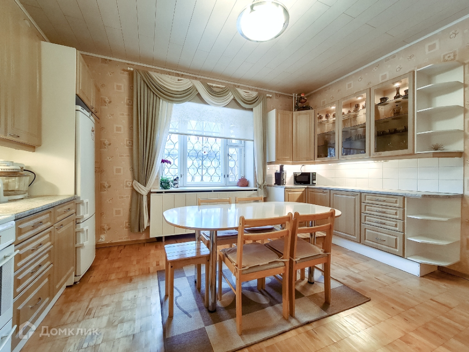 1 этаж: кухня, гостиная с действующим камином, санузел и комната-кабинет. Высота потолков - 3,18 м.