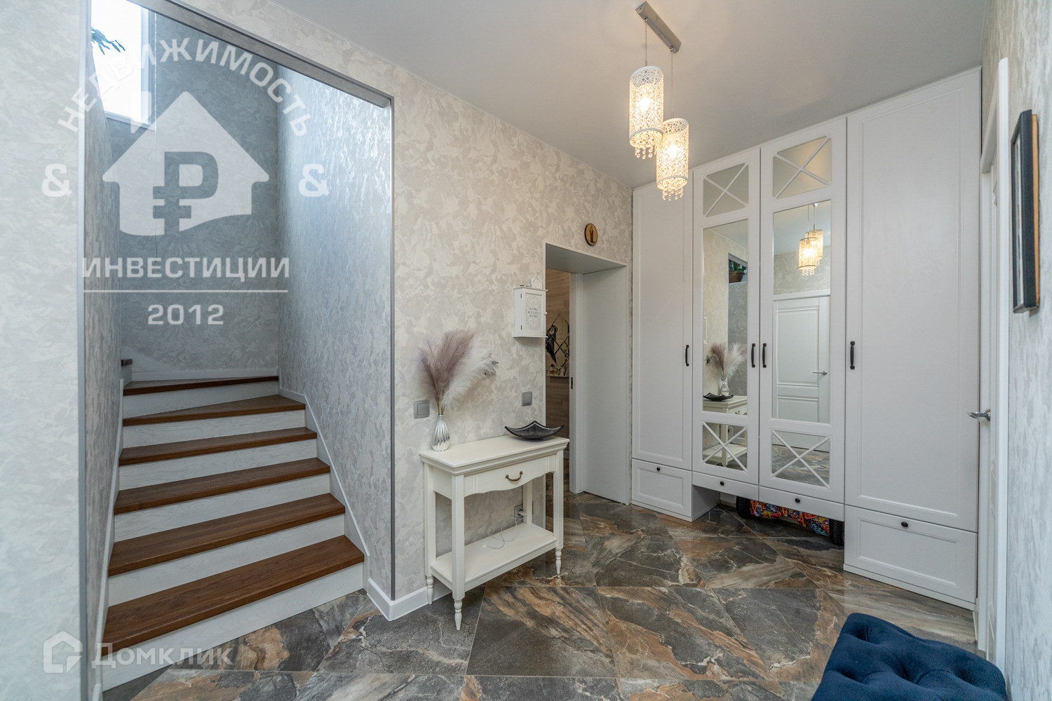 - Просторная входная группа с лестницей из натурального дуба на второй этаж.