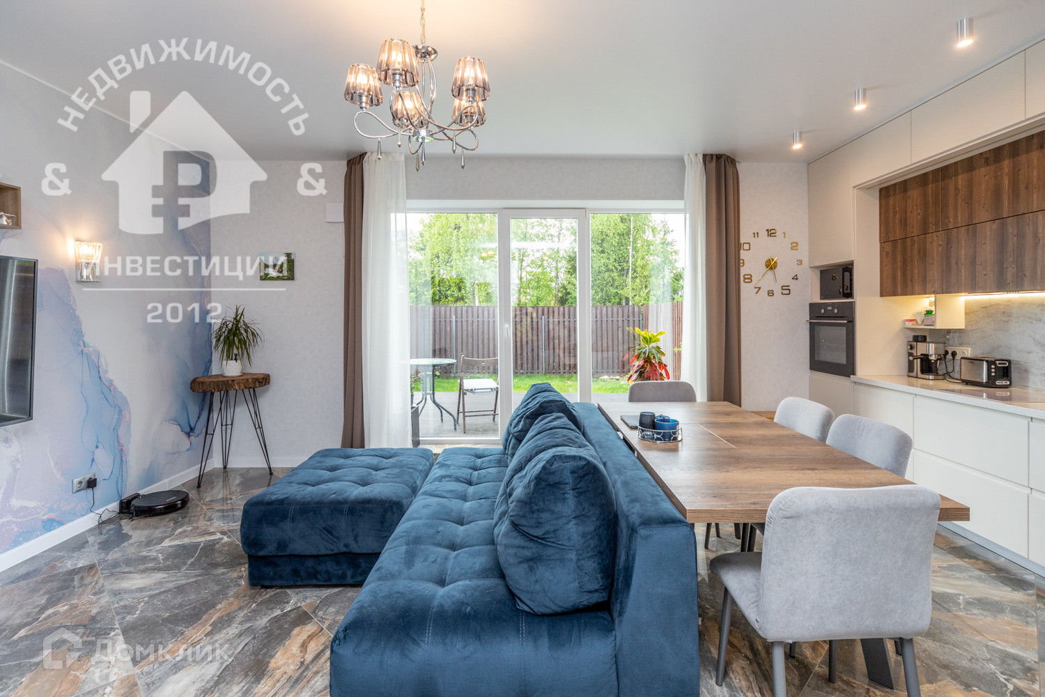 - Светлая кухня-столовая-гостиная, с большим панорамным окном с выходом на собственную террасу с видом на лес, можно поставить садовую мебель и у вас свой собственный оазис тишины и спокойствия. Установлен кухонный гарнитур с самой необходимой бытовой техникой.