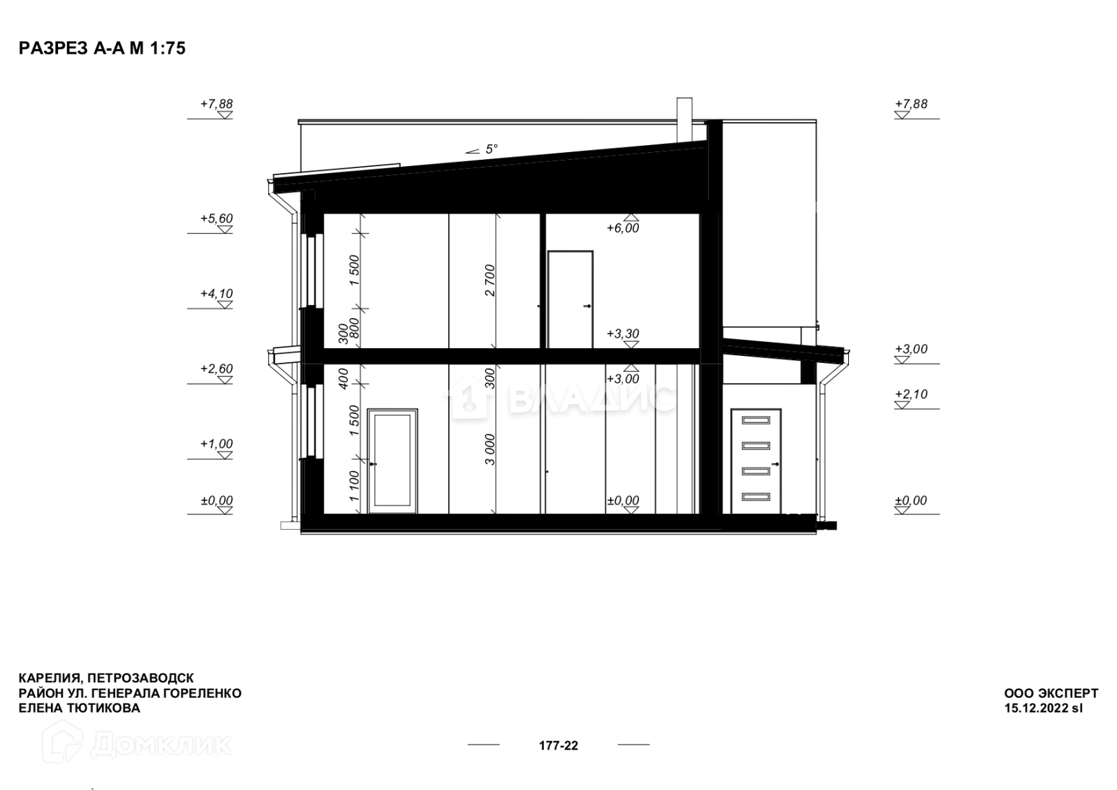 — Стены: газобетон D400 300 мм.