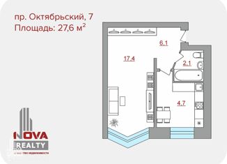 1-комнатная квартира в аренду, 25.3 м2, Октябрьский проспект, 60