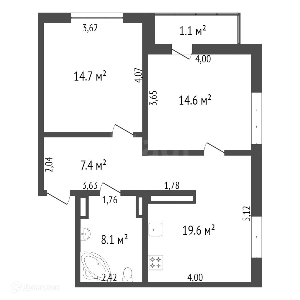 Общая площадь 64.4 м2