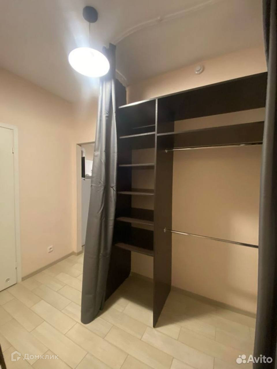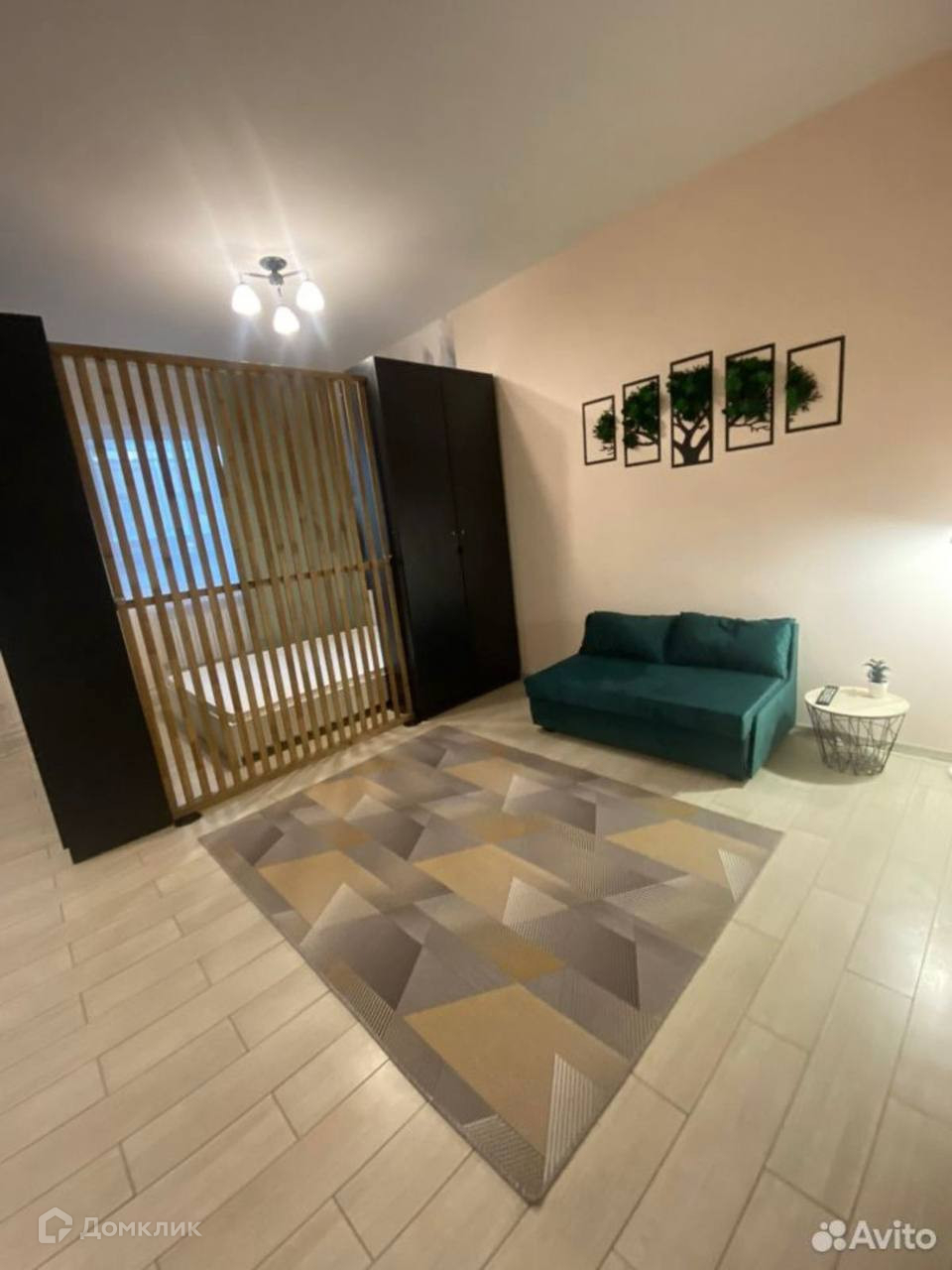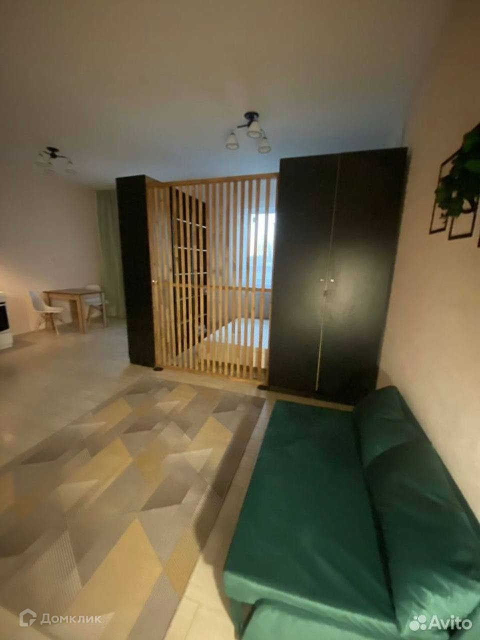 Перегородкой комната поделена на 2 части.
