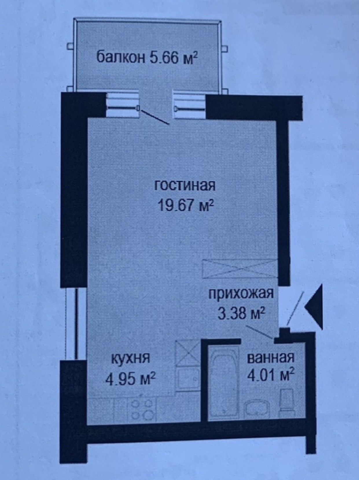 Общая площадь 32 м2