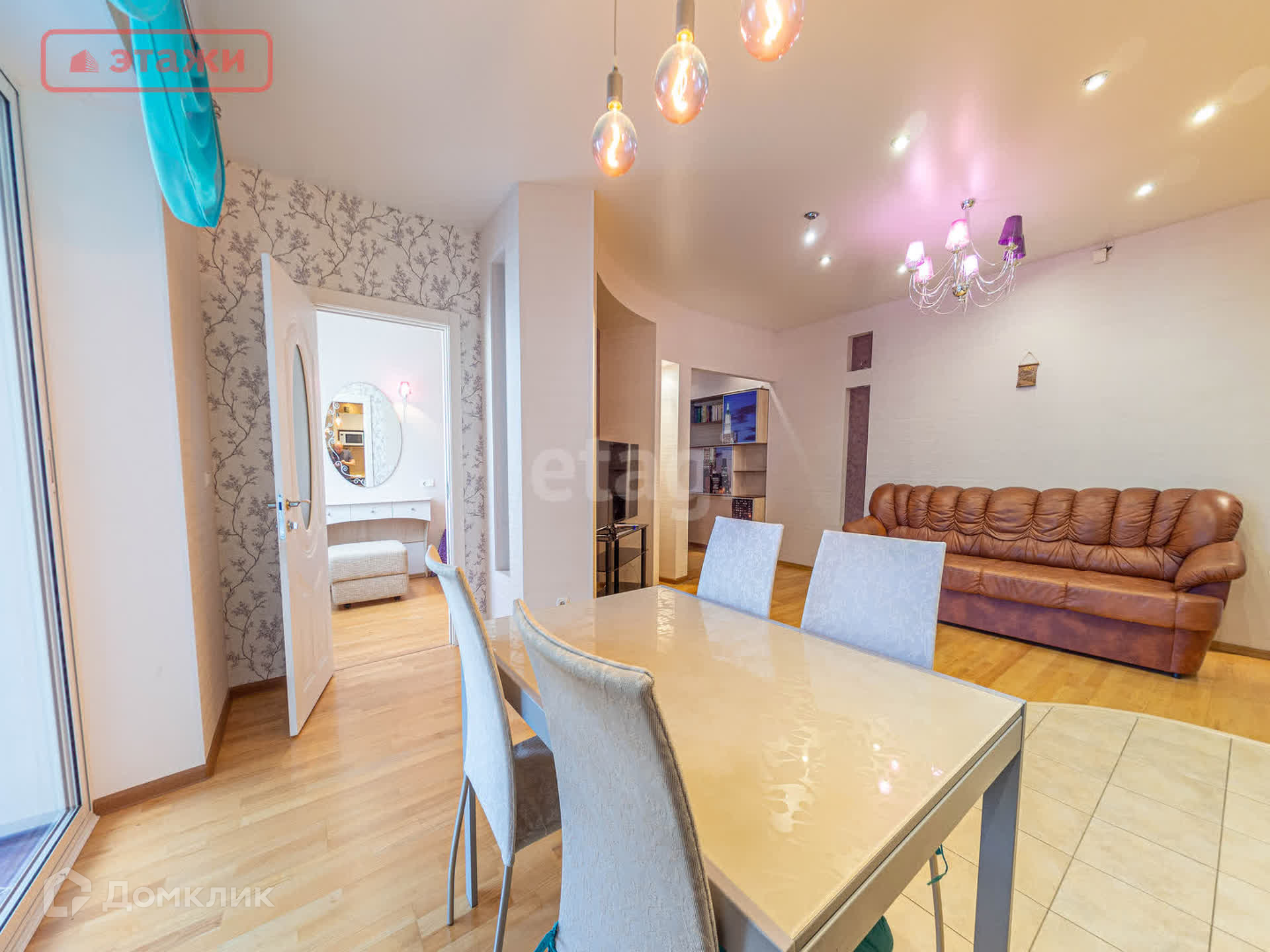 Отдельное внимание стоит уделить зоне диван-телевизор, которая представляет собой отдельную локацию для отдыха и проведения досуга. Подключено Смарт-ТВ.