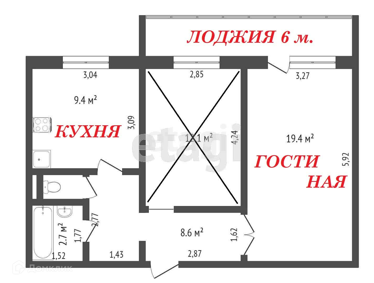 Общая площадь 41 м2