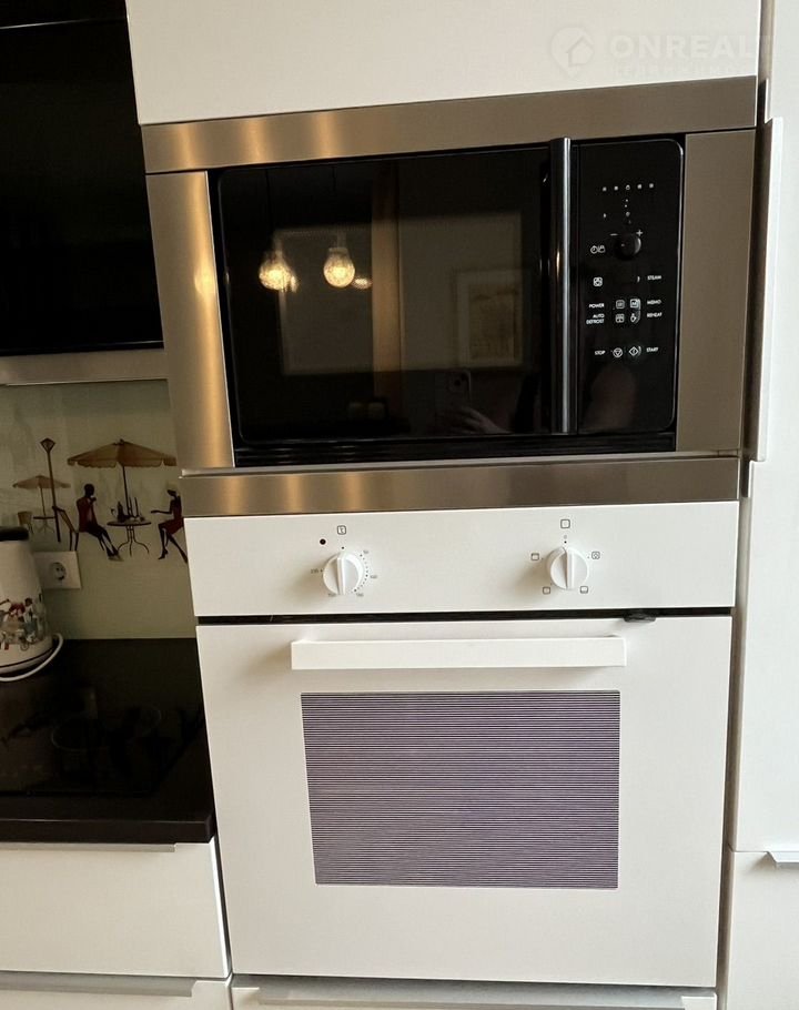 - Полное оснащение бытовой техникой: стиральная машина, микроволновка, посудомоечная машина, чайник, плита, холодильник и т. д.