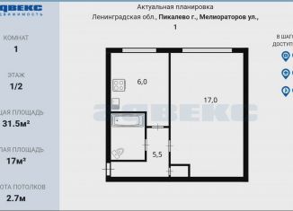 Продаю однокомнатную квартиру, 31.5 м2, улица Мелиораторов, 1