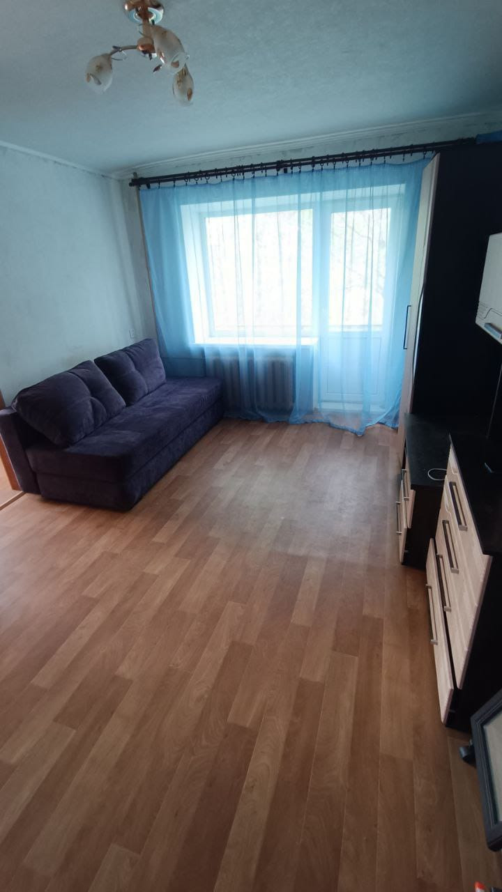 Комнаты смежные, есть незастекленный балкон. В квартире остаётся кухонный гарнитур с плитой и вытяжкой, а так же стенка для тв.