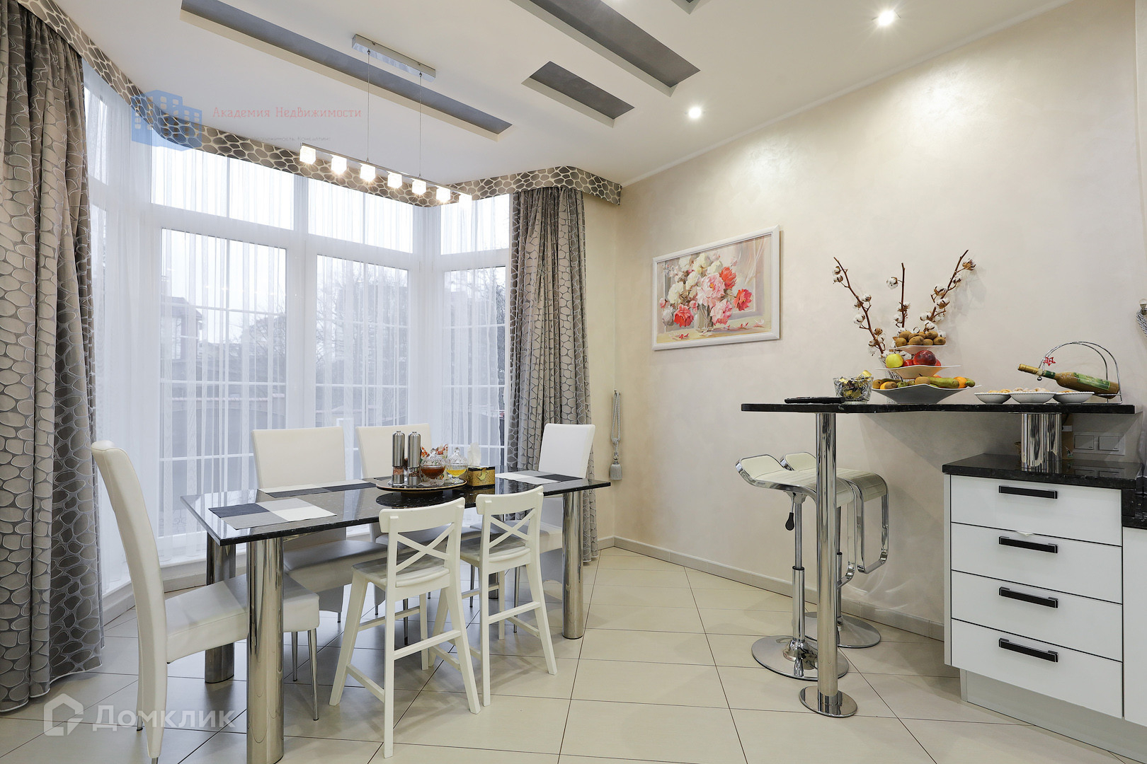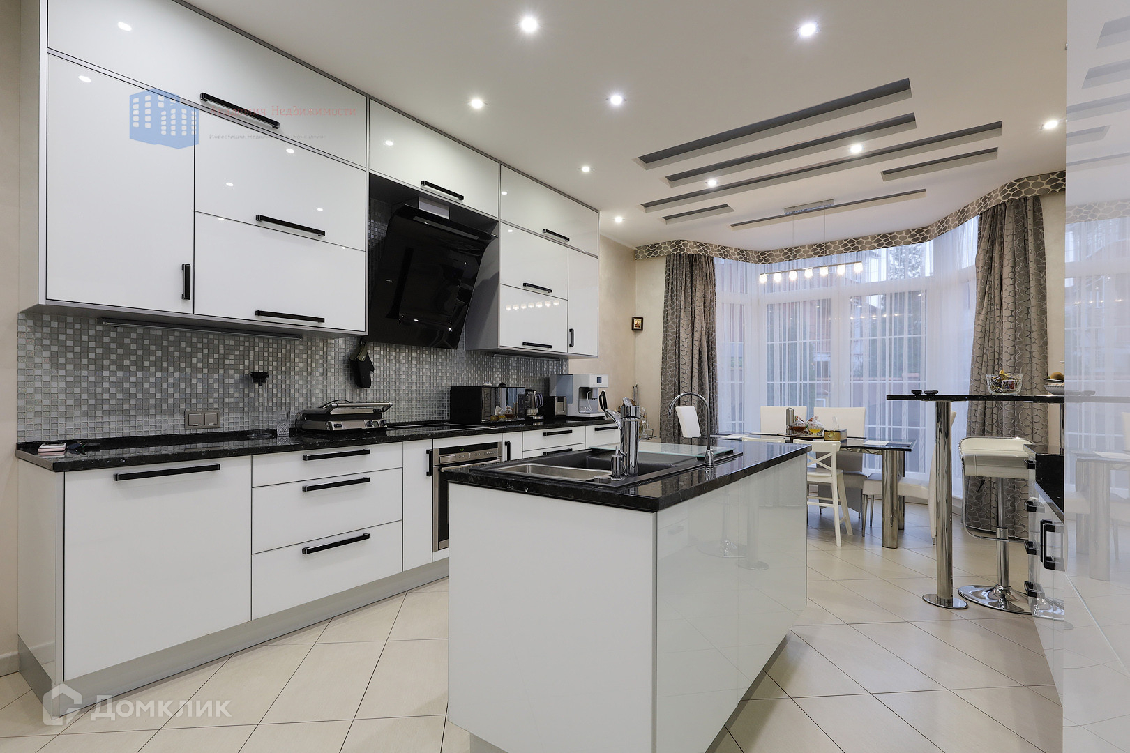 Из окон открывается чудесный вид на территорию дома, что способствует релаксу после трудового дня. В доме красивая и качественная мебель, в кухне премиальная техника, все от ведущих люксовых брендов.