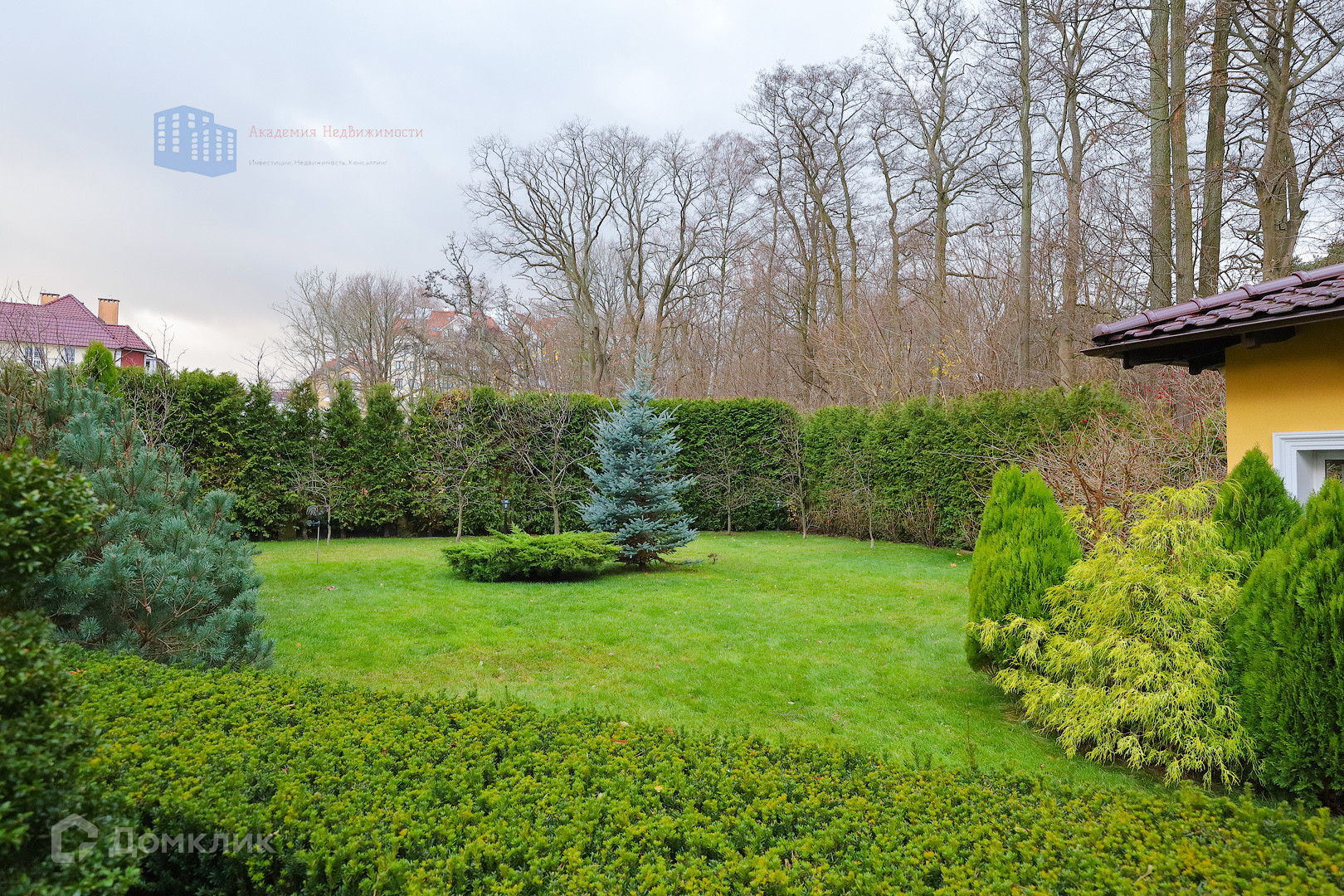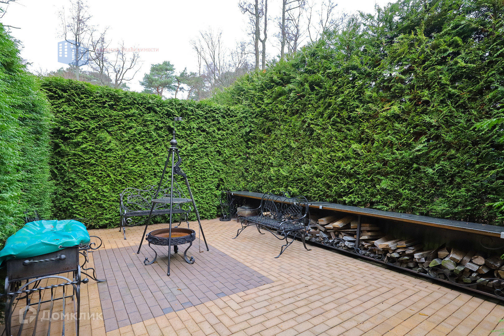 Участок окружают высокие деревья за забором, что создает полное ощущение приватности, покоя и защищенности от посторонних глаз и звуков.