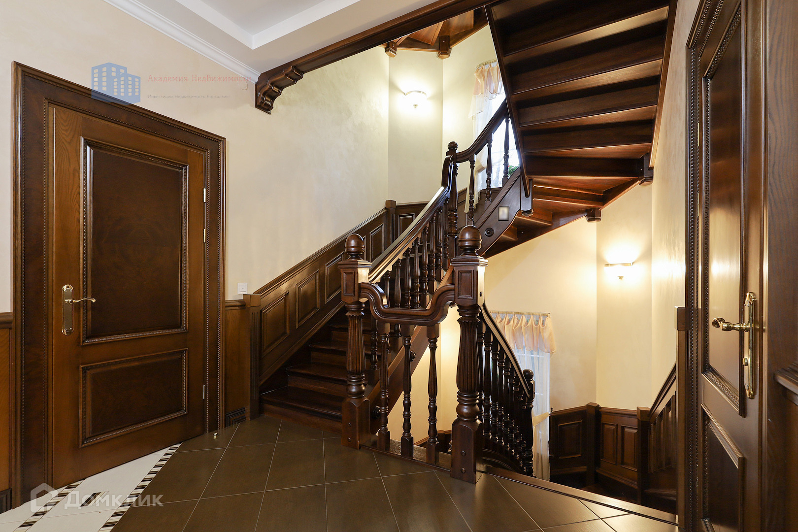 4 этажа ( 2 полноценных, мансардный и цокольный) исполнены в классическом стиле.