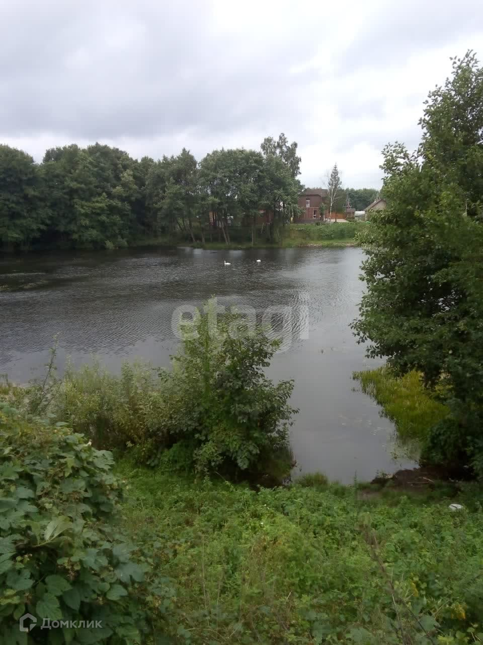 Озеро в 15.ти метрах от участка. Хорошие подъездные пути с уличным освещением, рядом асфальтированная трасса.