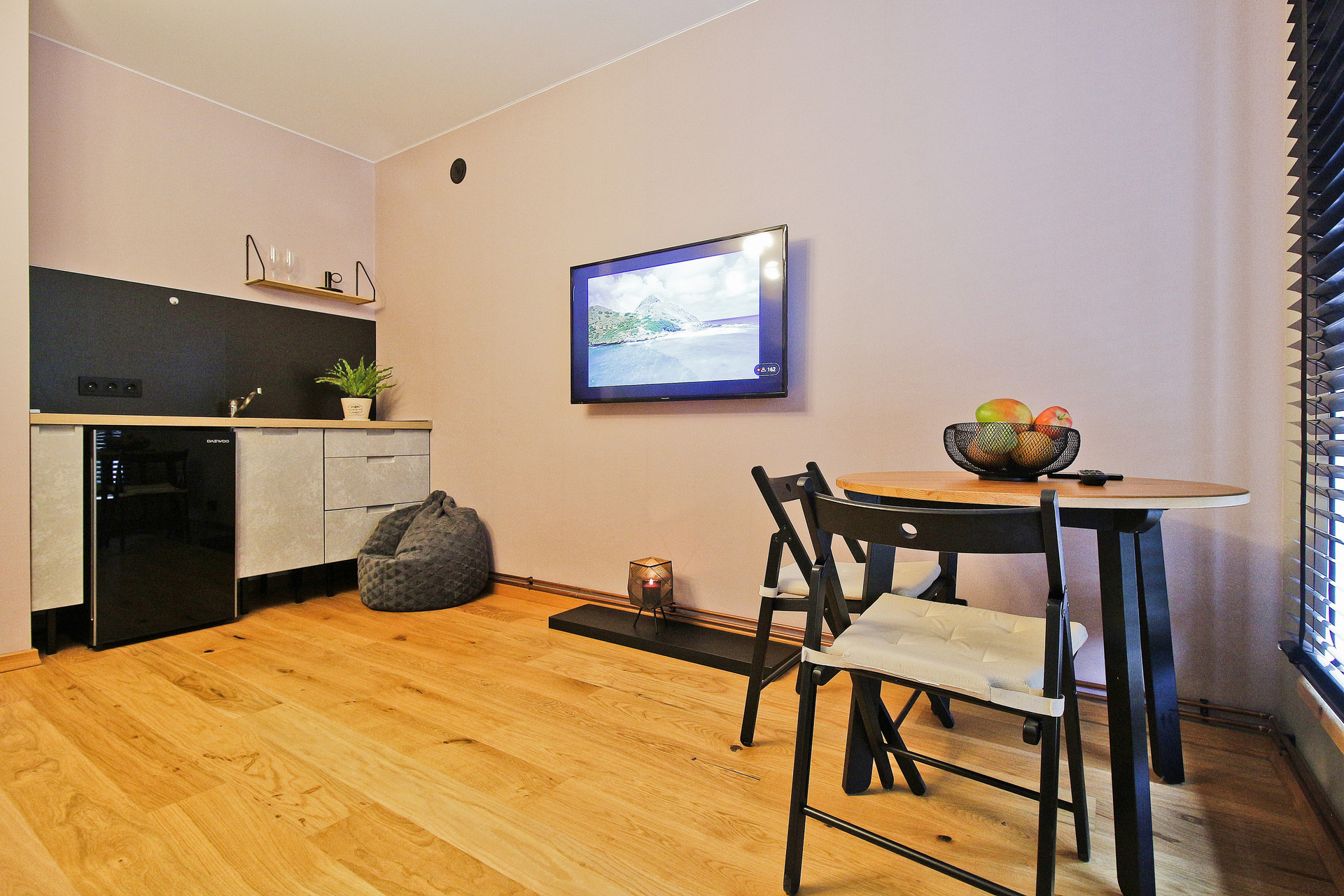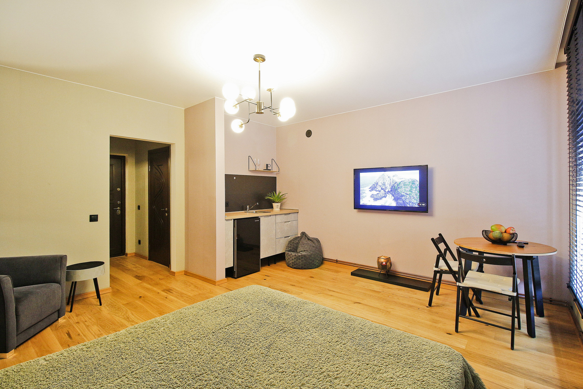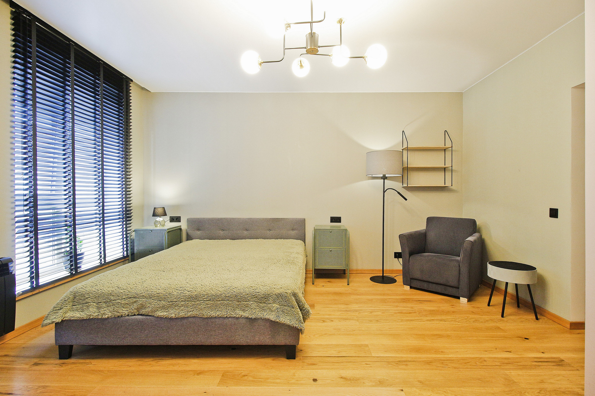Изюминка квартиры - два огромных панорамных окна в пол со стильными жалюзи. Их можно плотно закрыть, отгородившись от улицы, или открыть и любоваться закатом - это западная сторона!