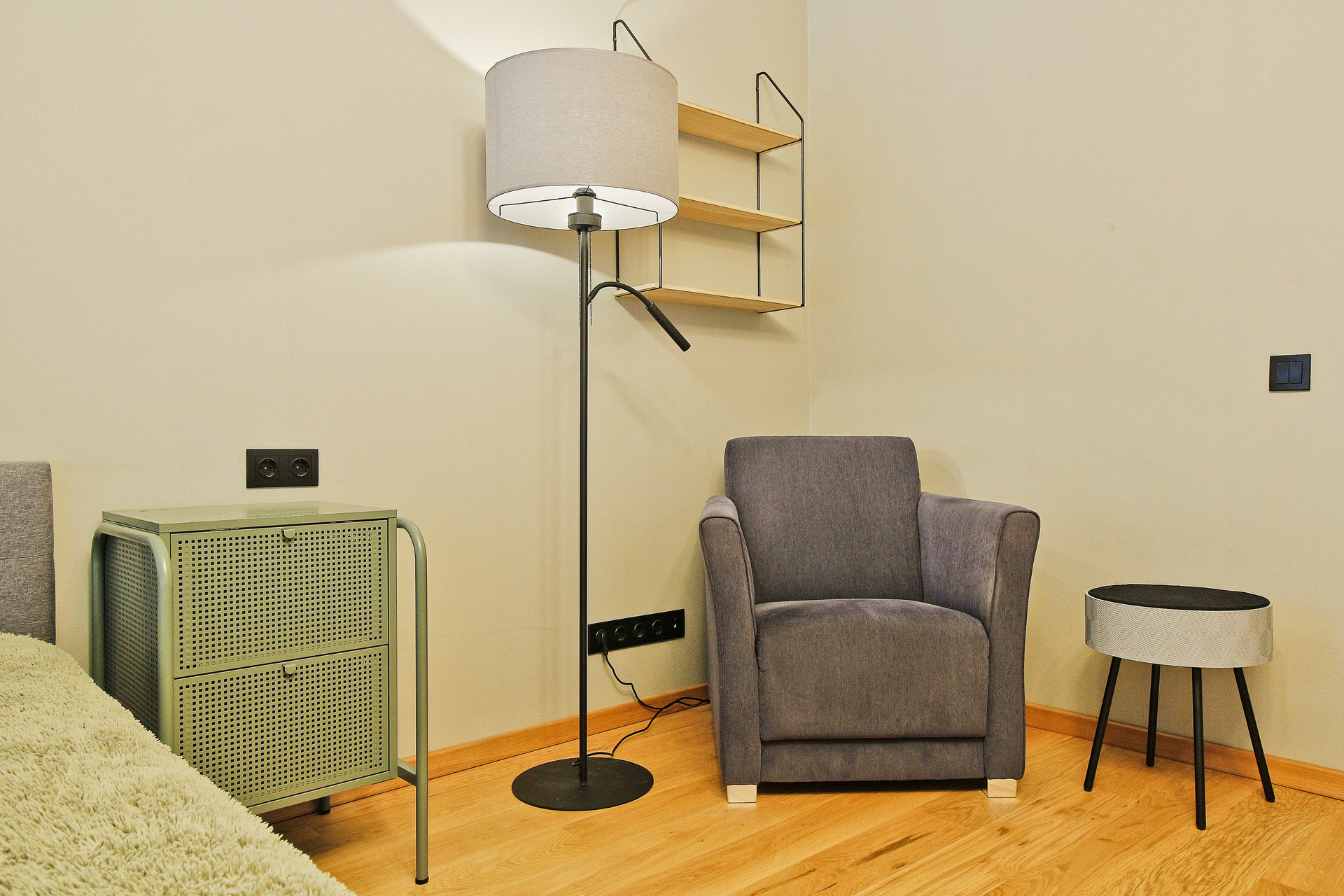 Квартира полностью оборудована всей необходимой мебелью и техникой. Нет ничего лишнего и при этом есть всё для комфортного проживания. В зоне спальни классная кровать с ортопедическим матрасом, кресло для отдыха и чтения, вместительные прикроватные тумбы, пуфик, бра и телевизор. В зоне кухни обеденный стол со стульями, компактная кухня, холодильник. В коридоре - вместительные стеллажи для хранения, напольное зеркало. В совмещенном санузле - стиральная машина с вертикальной загрузкой. Всё остаётся при продаже и входит в стоимость!